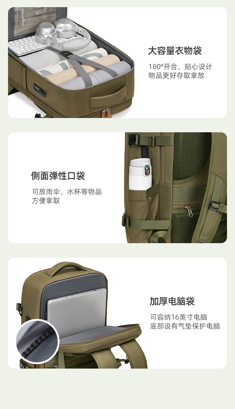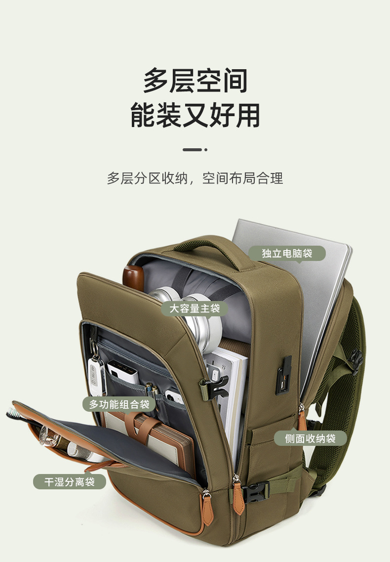 広州バッグメンズリュックサック高级感出张旅行多机能ビジネスパソコンバッグ真空圧縮リュックサック