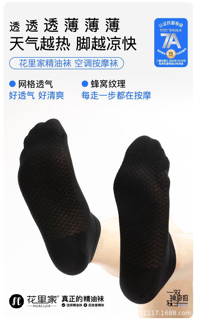 花里家エアコンマッサージ靴下夏通気靴下男性抗菌防臭ソックス女性薄い精油靴下