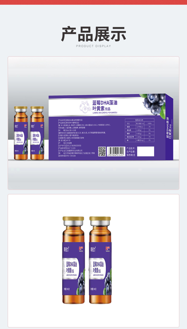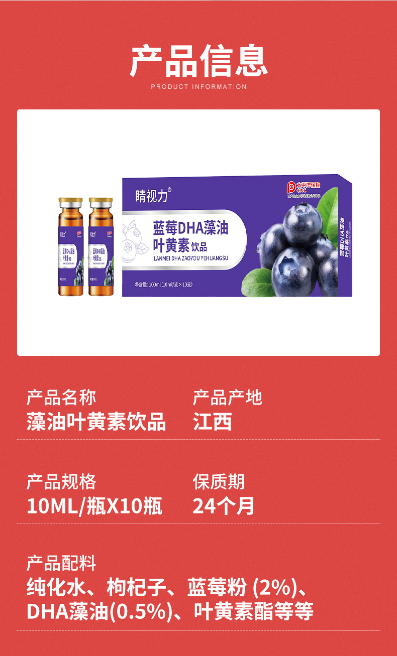ブルーベリーDHA藻類オイルルテインドリンク 子供と大人の視力保護ドリンク 藻類オイルルテインエステルドリンク
