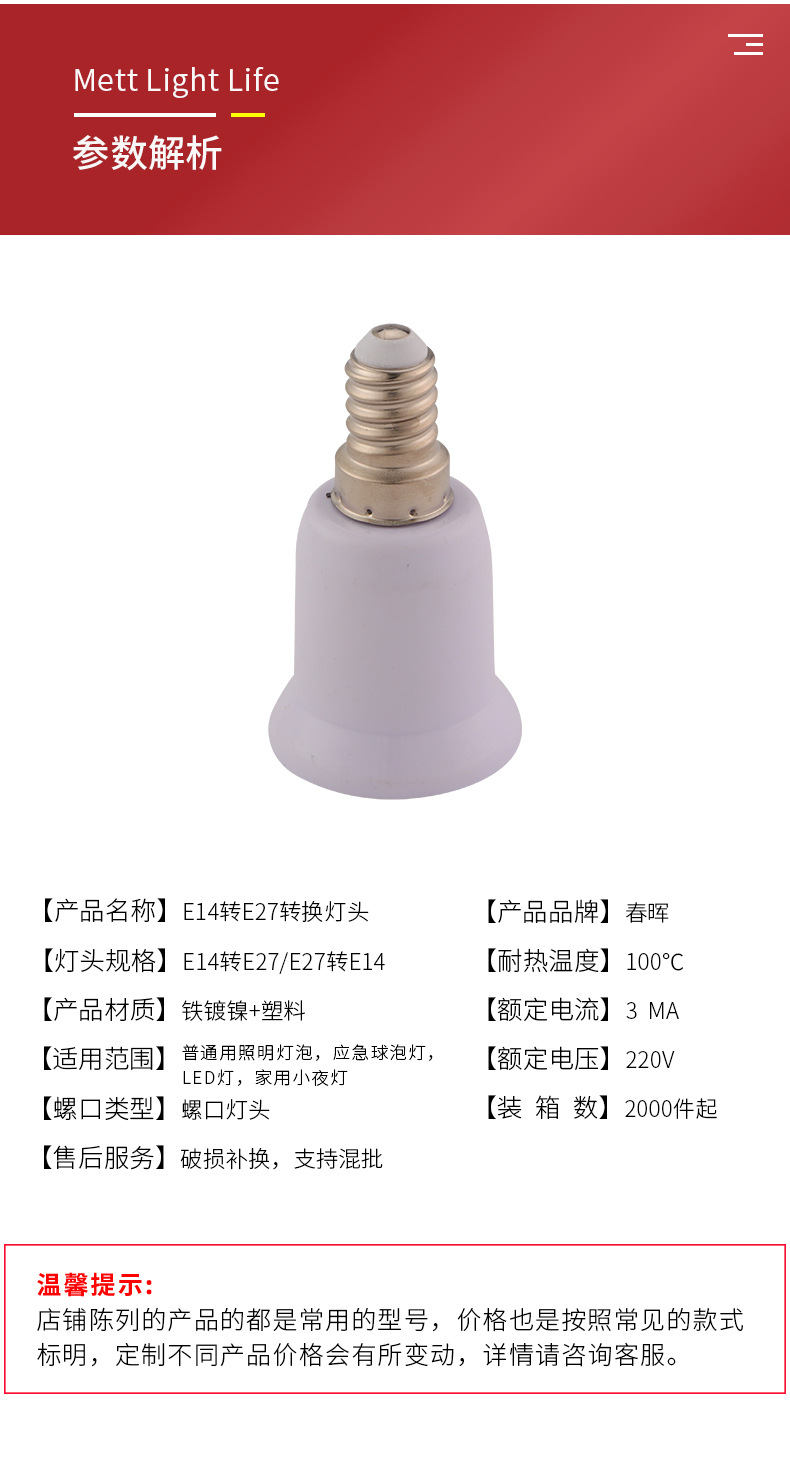 E27-E14変換ランプ鉄質e14-e27変換ランプメーカー直販LED電球ランプ部品