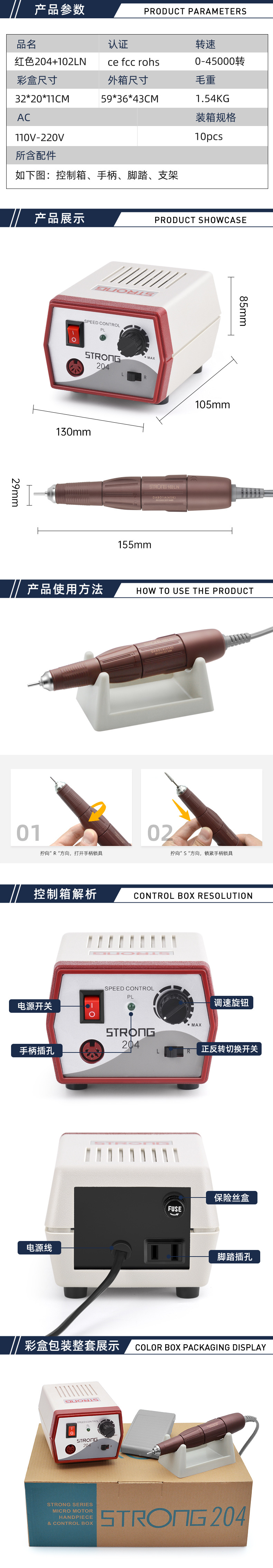 STRONG204歯機彫刻機小型ネイルサンダー玉彫刻歯科爪磨き器包郵便