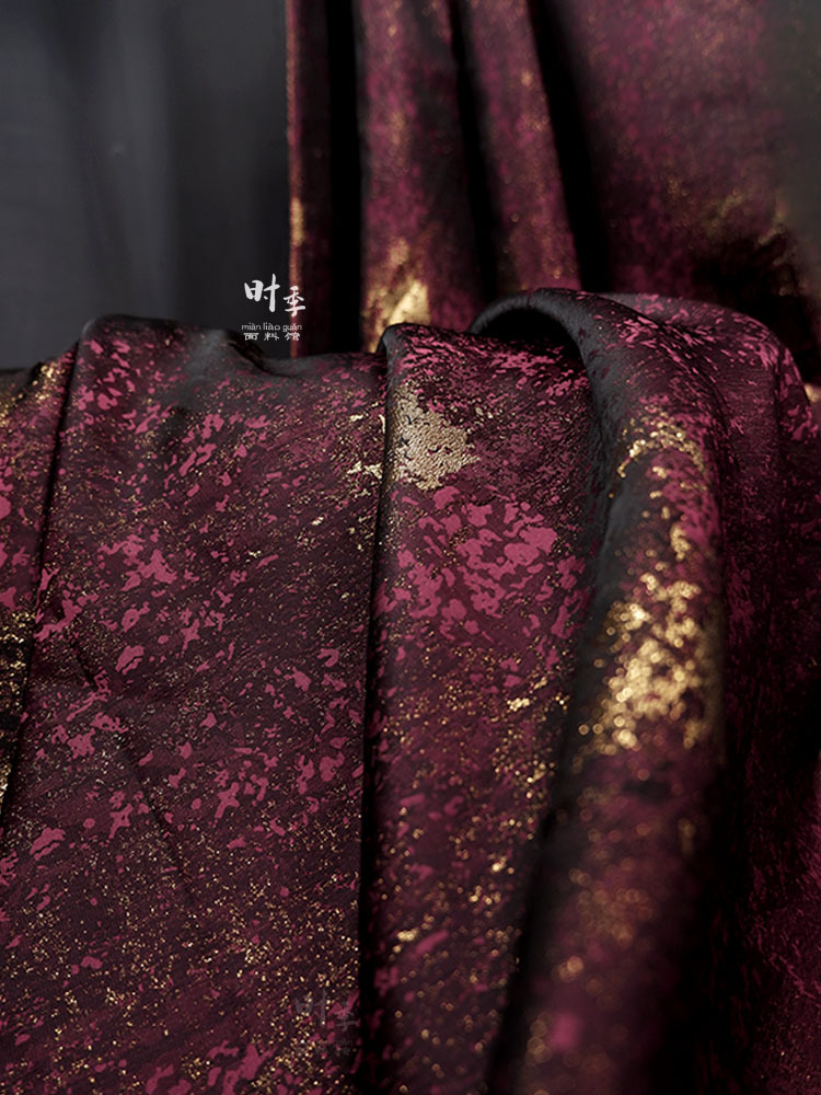 星辰大海暗红色鎏金双面不规则提花面料汉服马面裙diy设计师布料