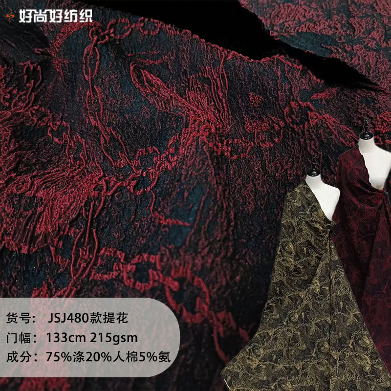 暗红色铁链提花肌理布料立体再造复古外套西装裙包服装设计师面料
