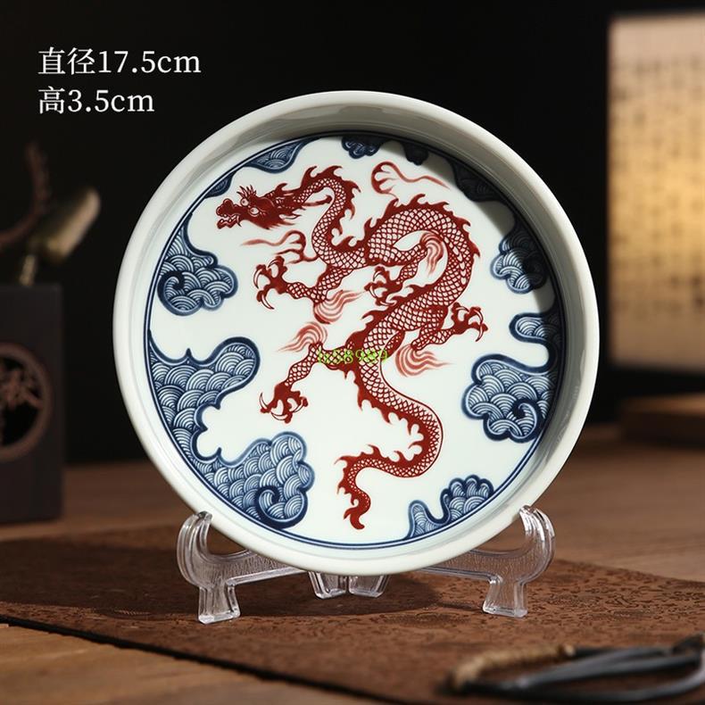 青花汝窯壺承杯陶磁器乾泡台小型茶盤茶パッド小神龍茶トレー茶道部品