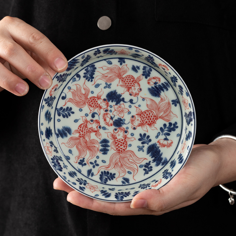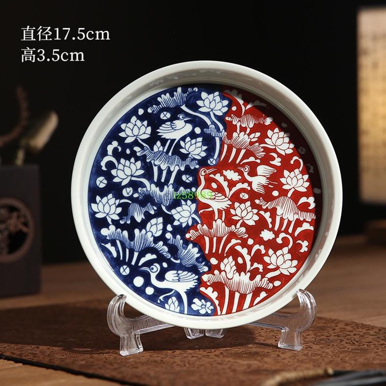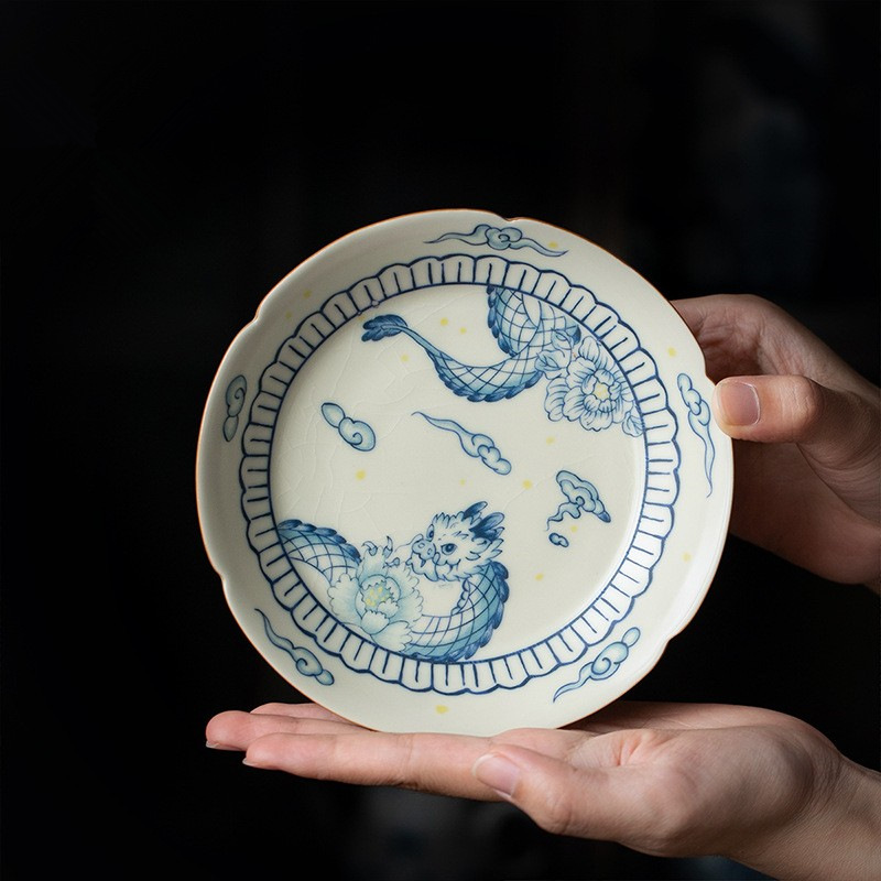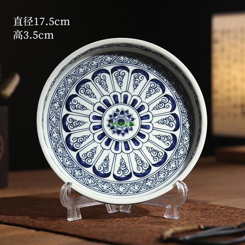 墨己青花手書き陶磁器壺承茶道部品陶磁器円盤文人乾泡皿家庭用茶点皿