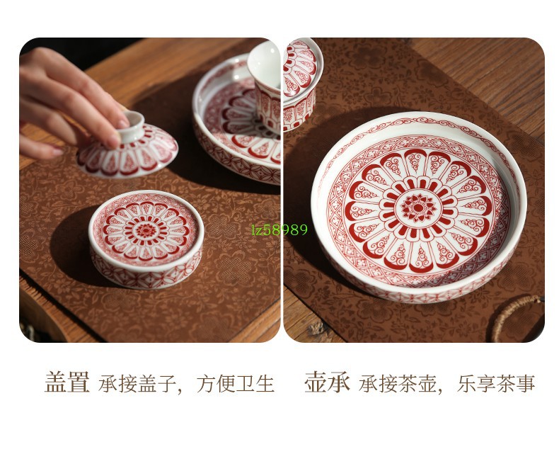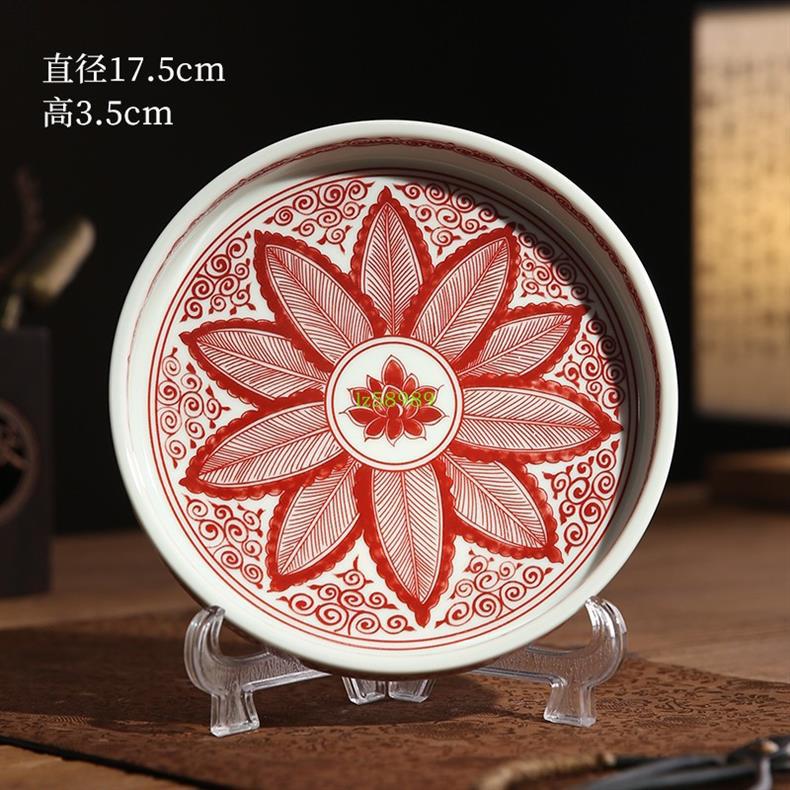 景徳鎮陶器 青花壺台 小型 シングル ドライティー用 蓋付き茶碗トレイ 家庭用 蓮の枝模様 老陶土