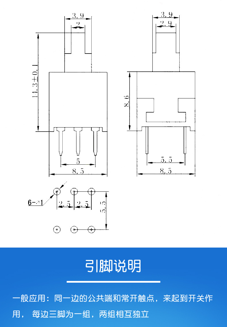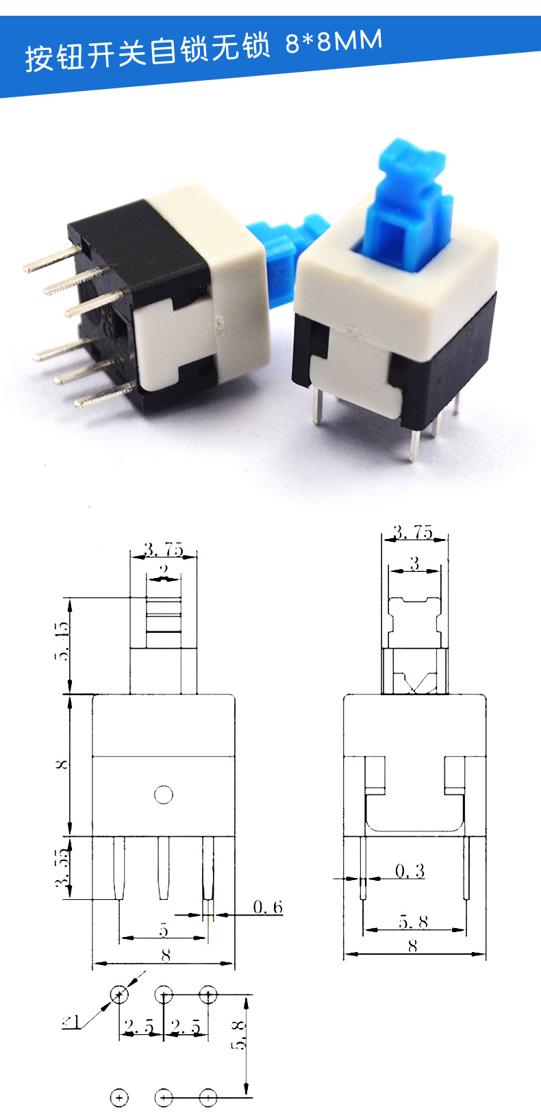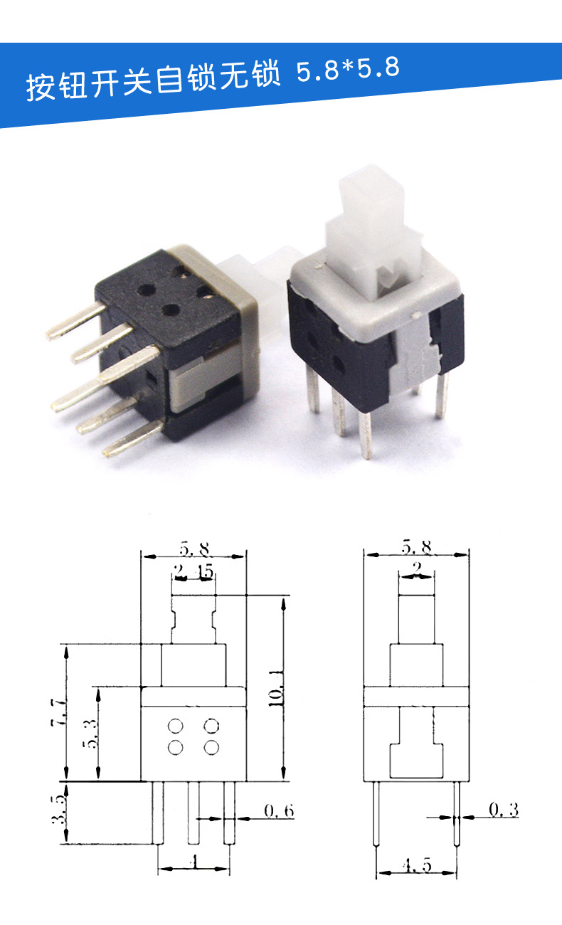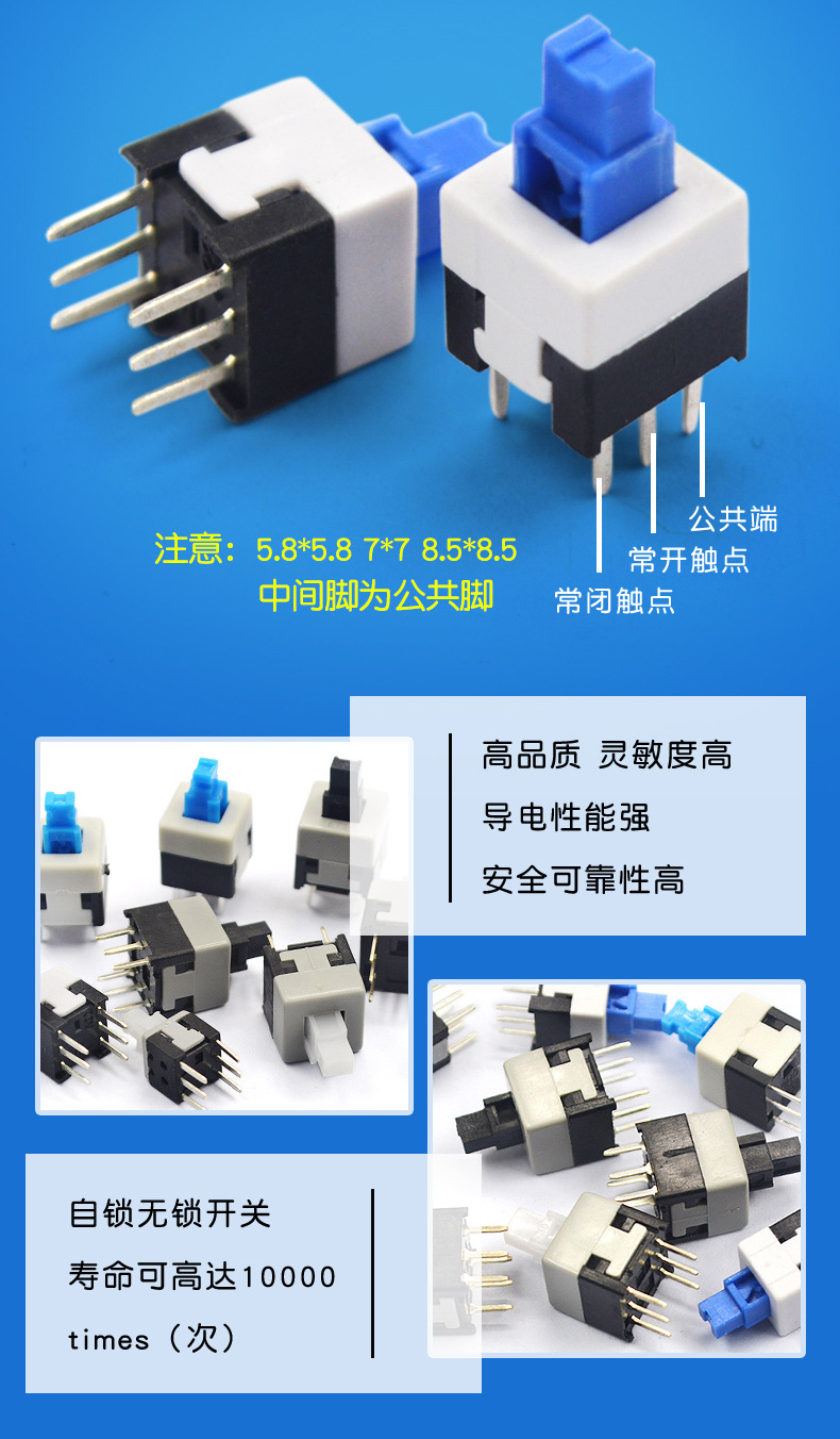 ボタンスイッチ六脚スイッチ5.8*5.8*7*8*8 8.5 * 8.5MMセルフロック無錠スイッチ6脚
