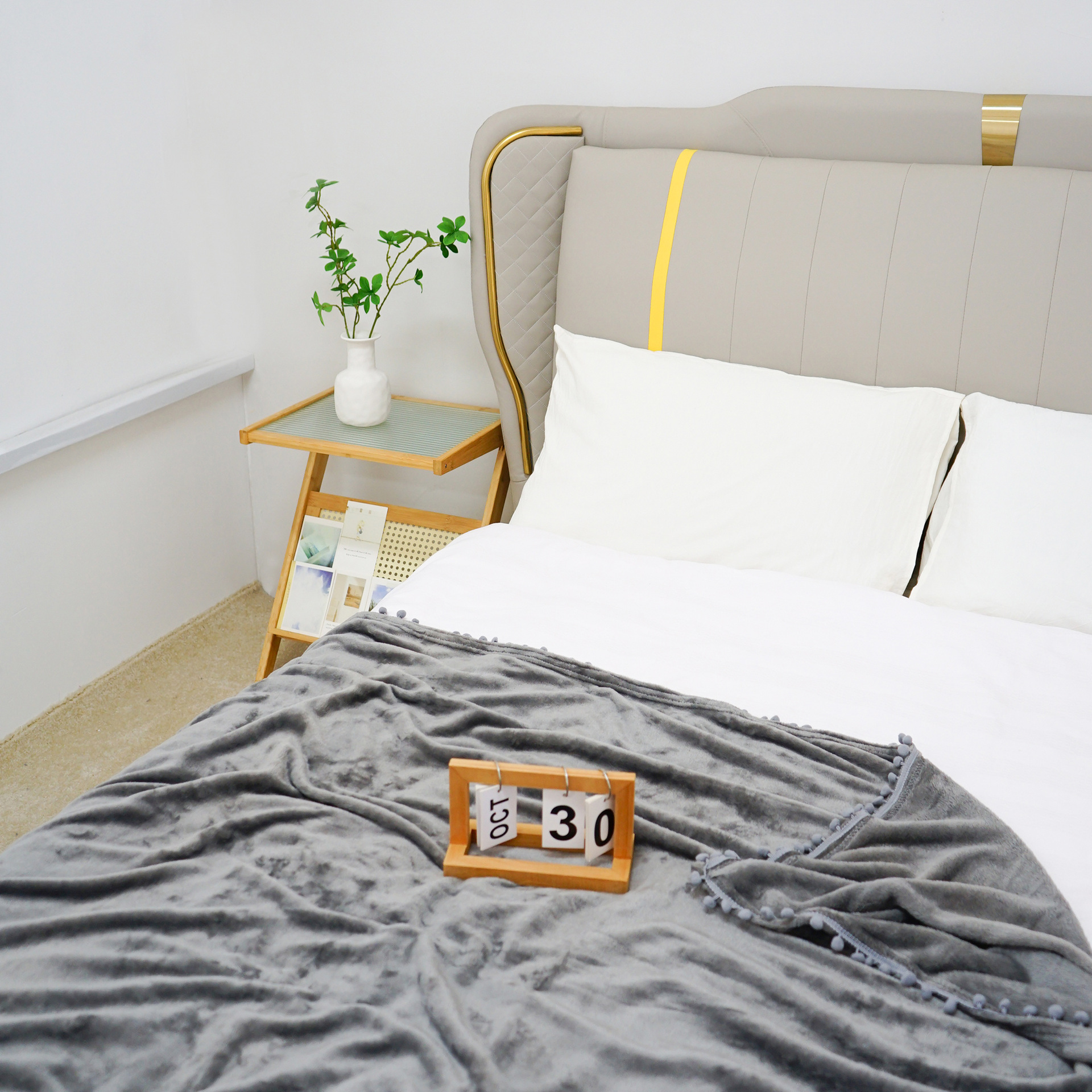 カスタマイズ可能片面無地フランネル小さなボールプロモーションクッション毛布寝具高級生地昼寝ブランケット