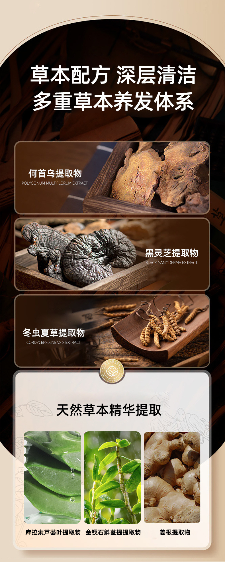 头疗店用草本养发乳植物萃取何首乌修护遮盖白发黑发黑灵芝乌发乳