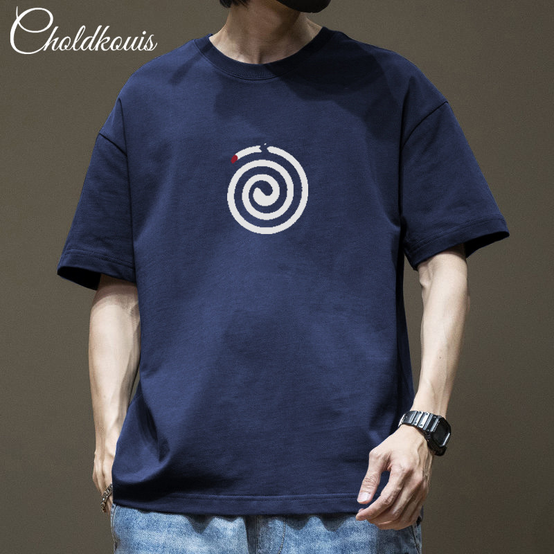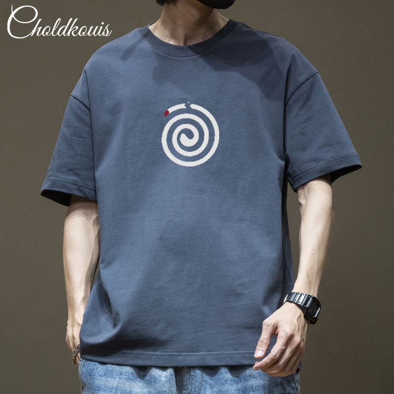 ファッションアメリカ半袖tシャツ男性夏純綿丸襟百合レジャー2025新型ファッションブランドゆるい香港風tシャツ