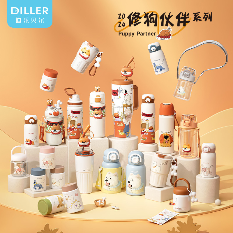 迪楽ベル修犬シリーズ保温カップアニメ男女学生外出携帯通学専用大容量水筒