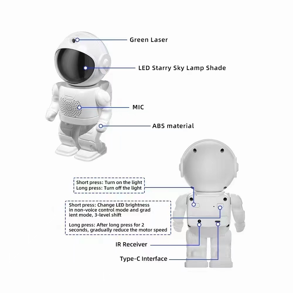 ブルートゥース宇宙飛行士星空投影灯宇宙人満天星星星星雰囲気灯創意プレゼント電気スタンド小夜灯