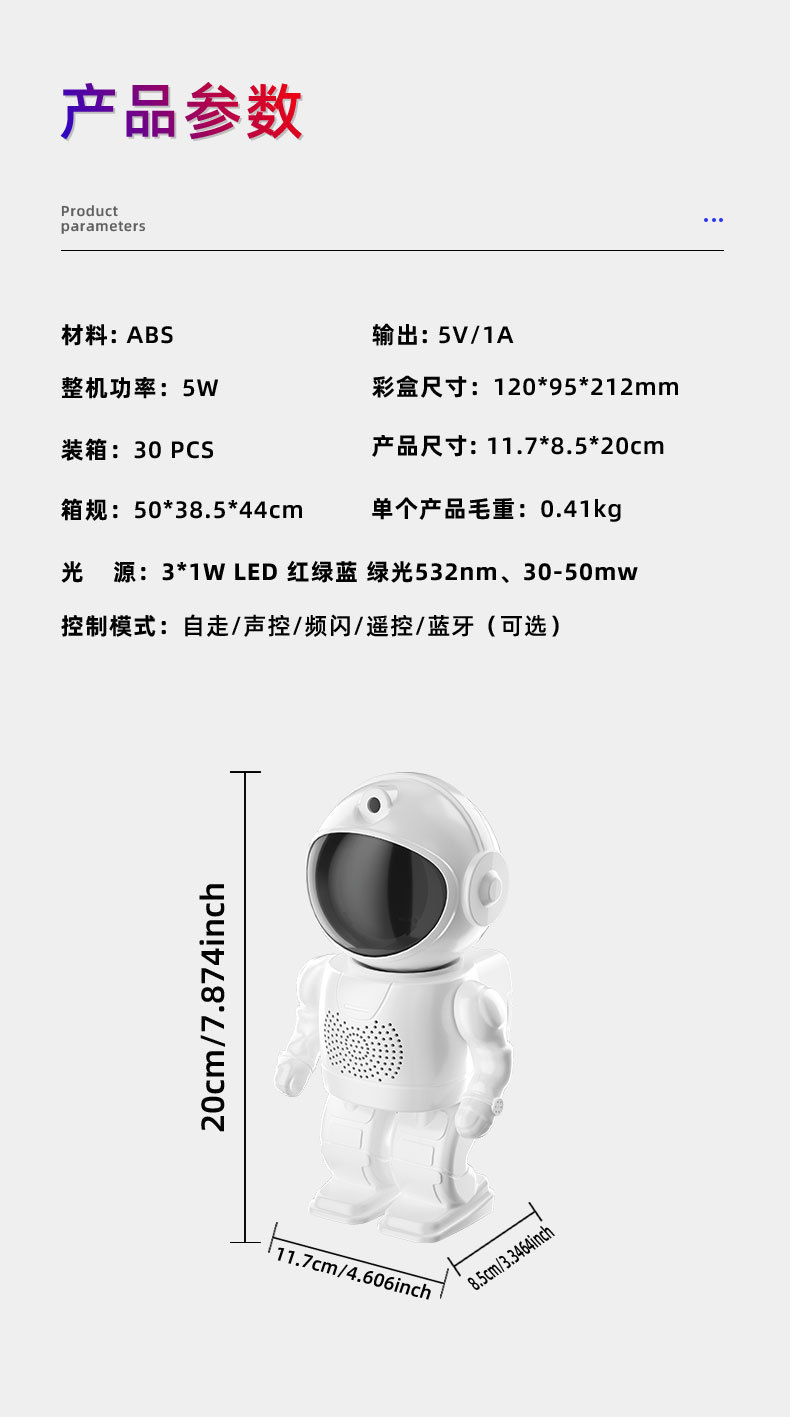 新型ブルートゥース宇宙飛行士銀河機甲星空投影灯寝室携帯式雰囲気灯水波紋動態灯