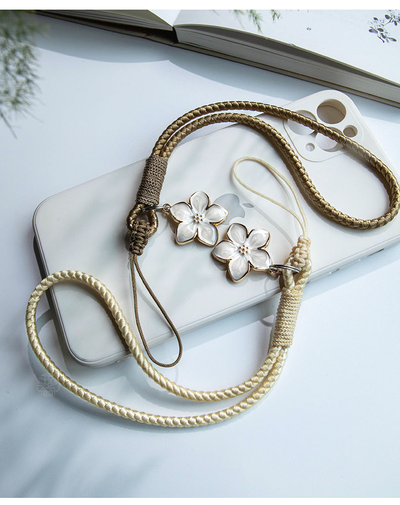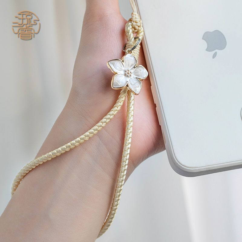 清新文艺手机链挂绳短款手机壳挂绳手腕手工编织花朵古风钥匙U盘