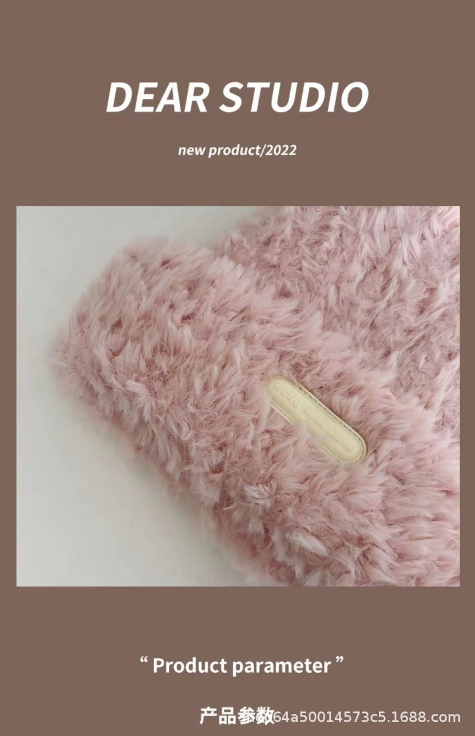 针织帽子大头围冬季奶芙绒帽子女加厚包头帽显小脸保暖白色温柔风