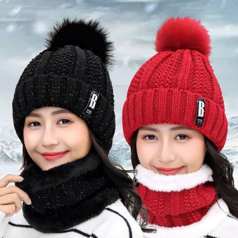 帽子の女性の冬のニットのマフラーの帽子とベルベットの厚い保温防風帽子のニットの耳の自転車の毛糸の帽子