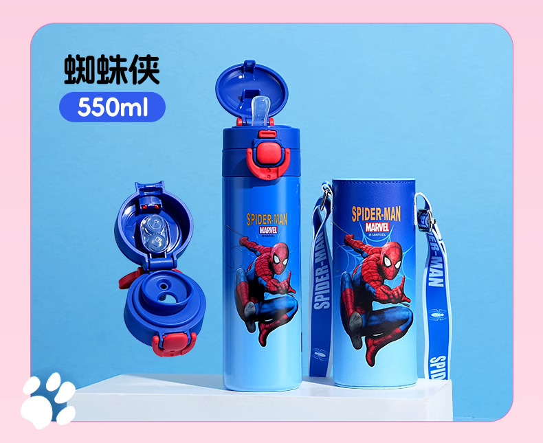 スパイダーマン子供保温カップ食品級316学生携帯ダブル飲料カップ大容量幼稚園ストローカップ