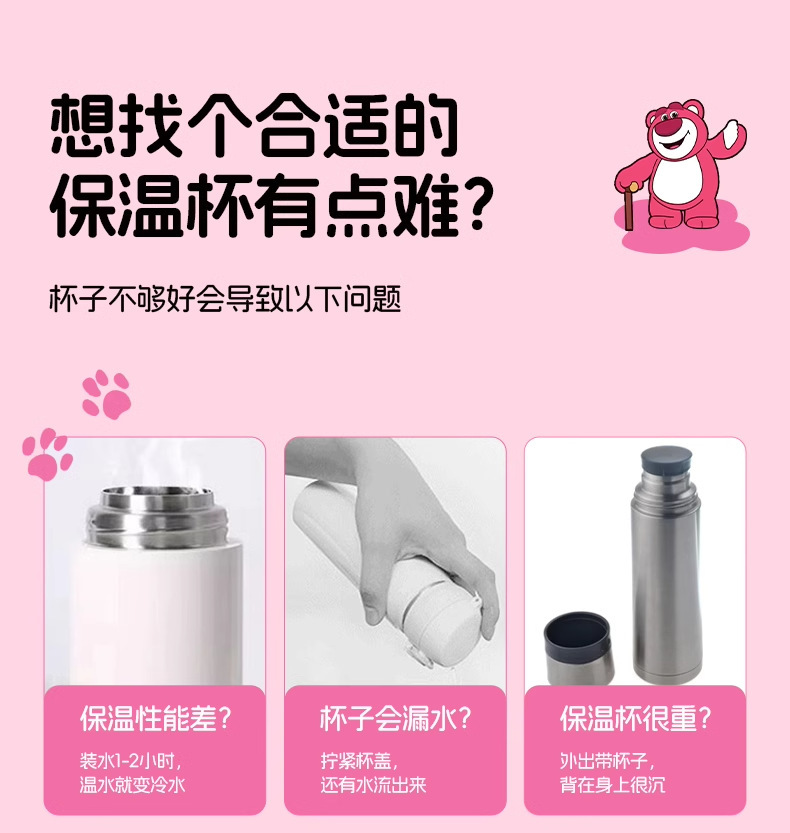 新型スパイダーマンいちご熊一蓋双飲保温カップ316ステンレス直飲携帯かわいいアニメコップ