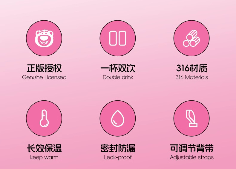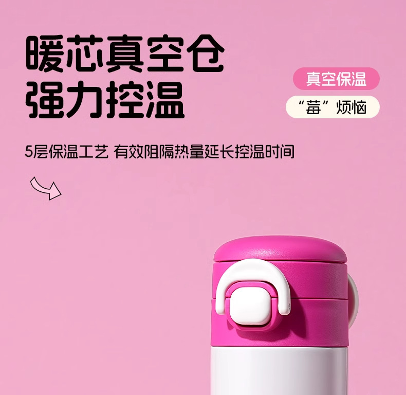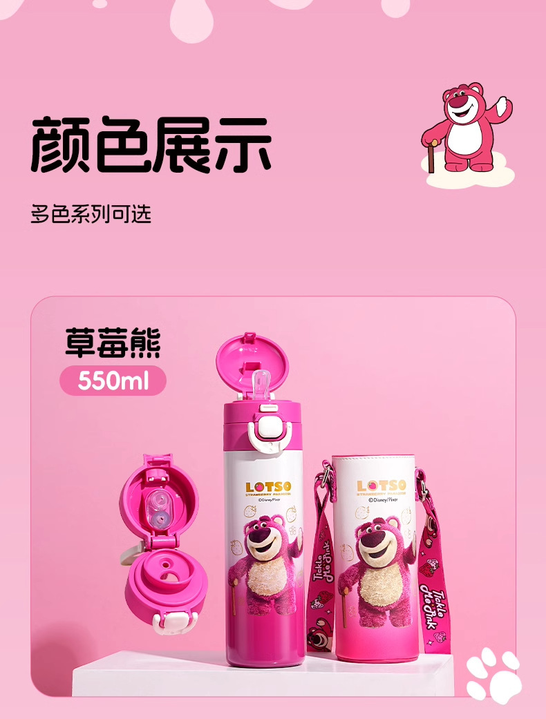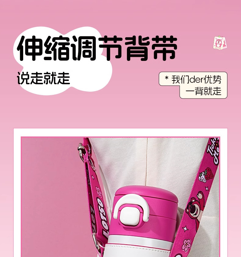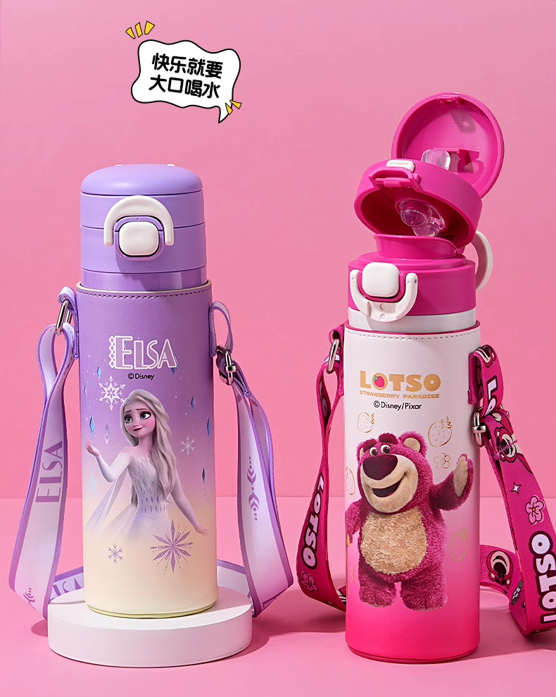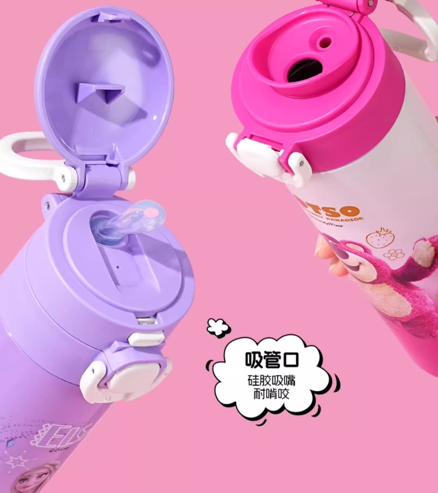 ミッキーいちご熊子供ファッション保温ダブルドリンクカップストラップ水杯男女童姫小学生専用