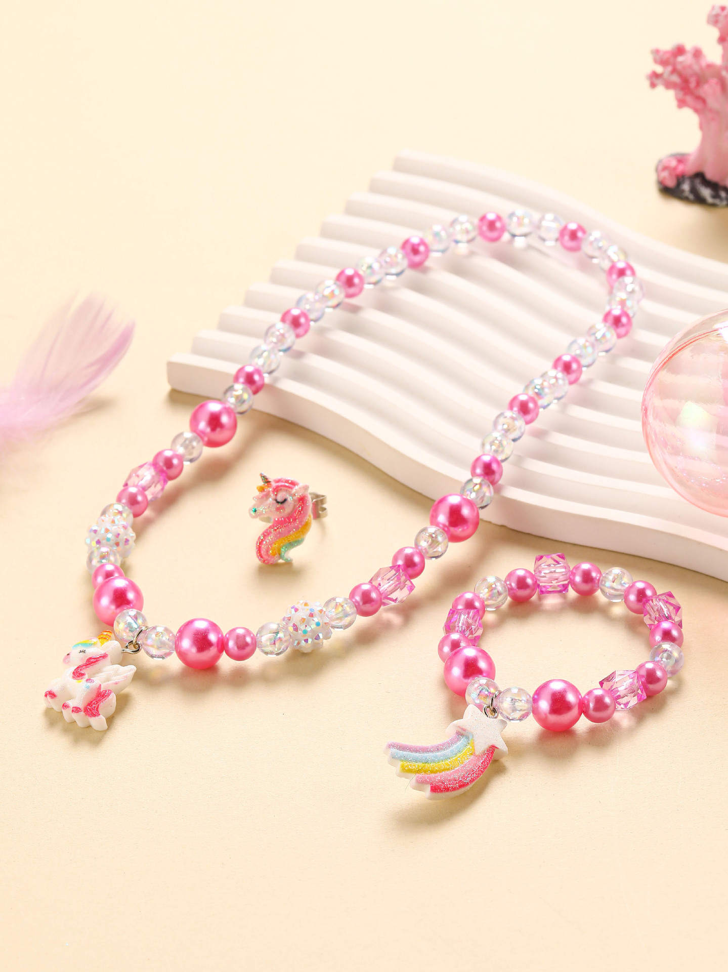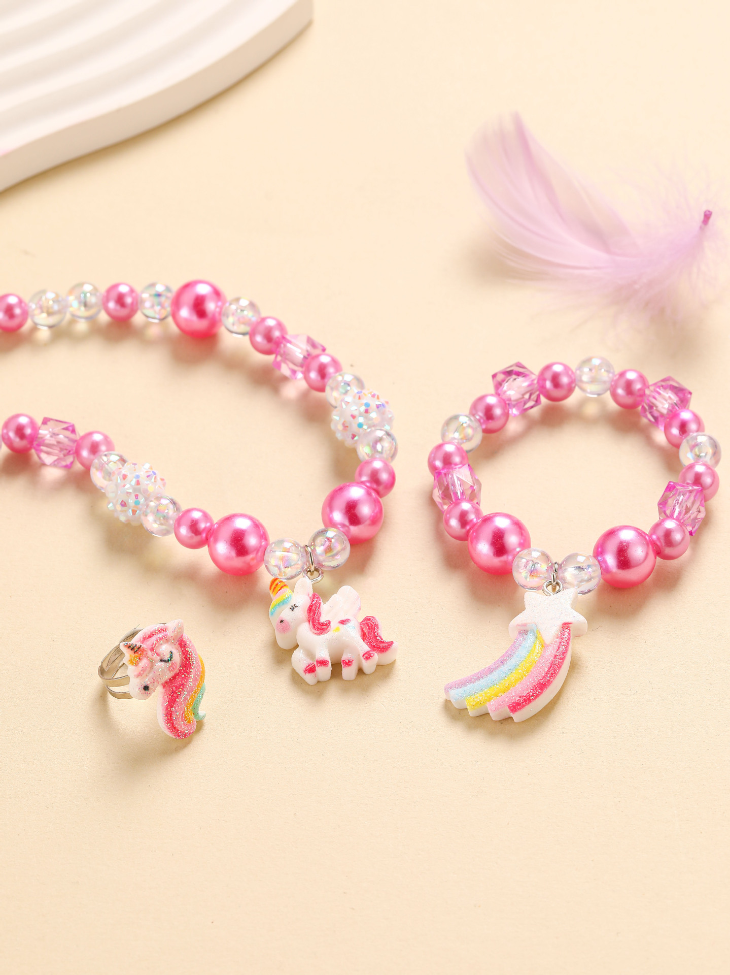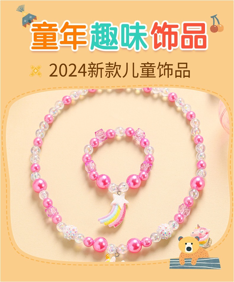 虹のポニーの子供のネックレスのブレスレットのピンクの蝶結びのビーズの女の子の赤ちゃんのかわいいアクセサリーのクロスボーダー