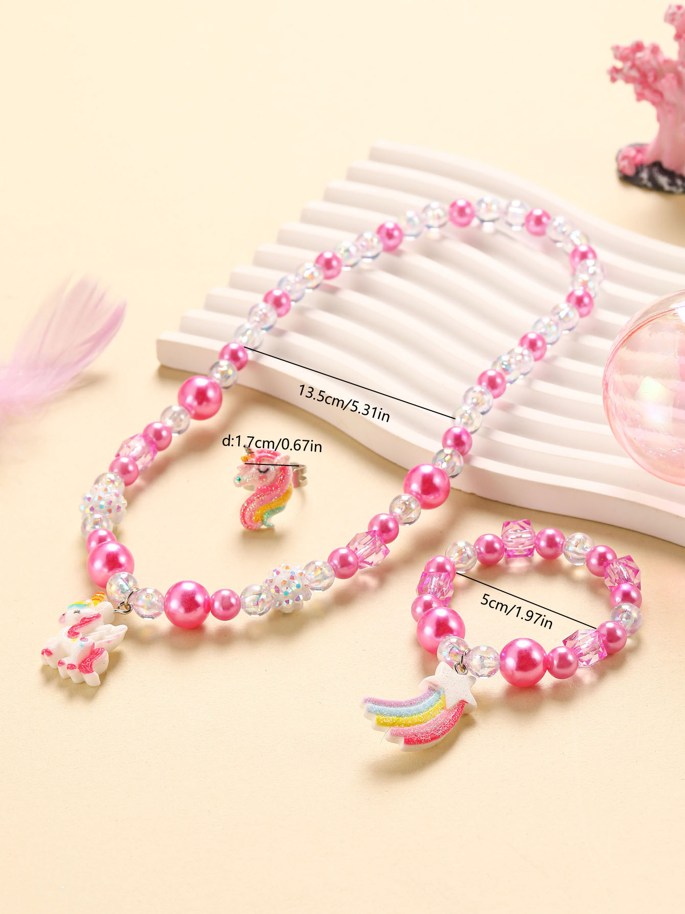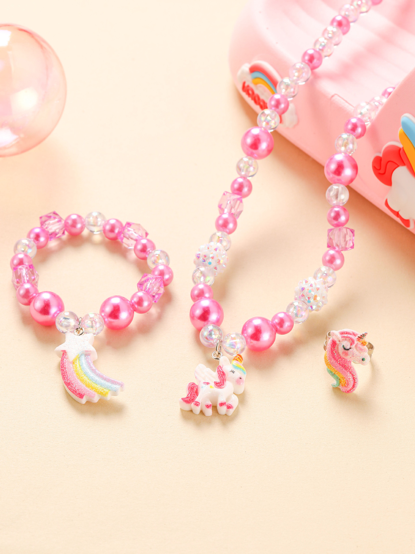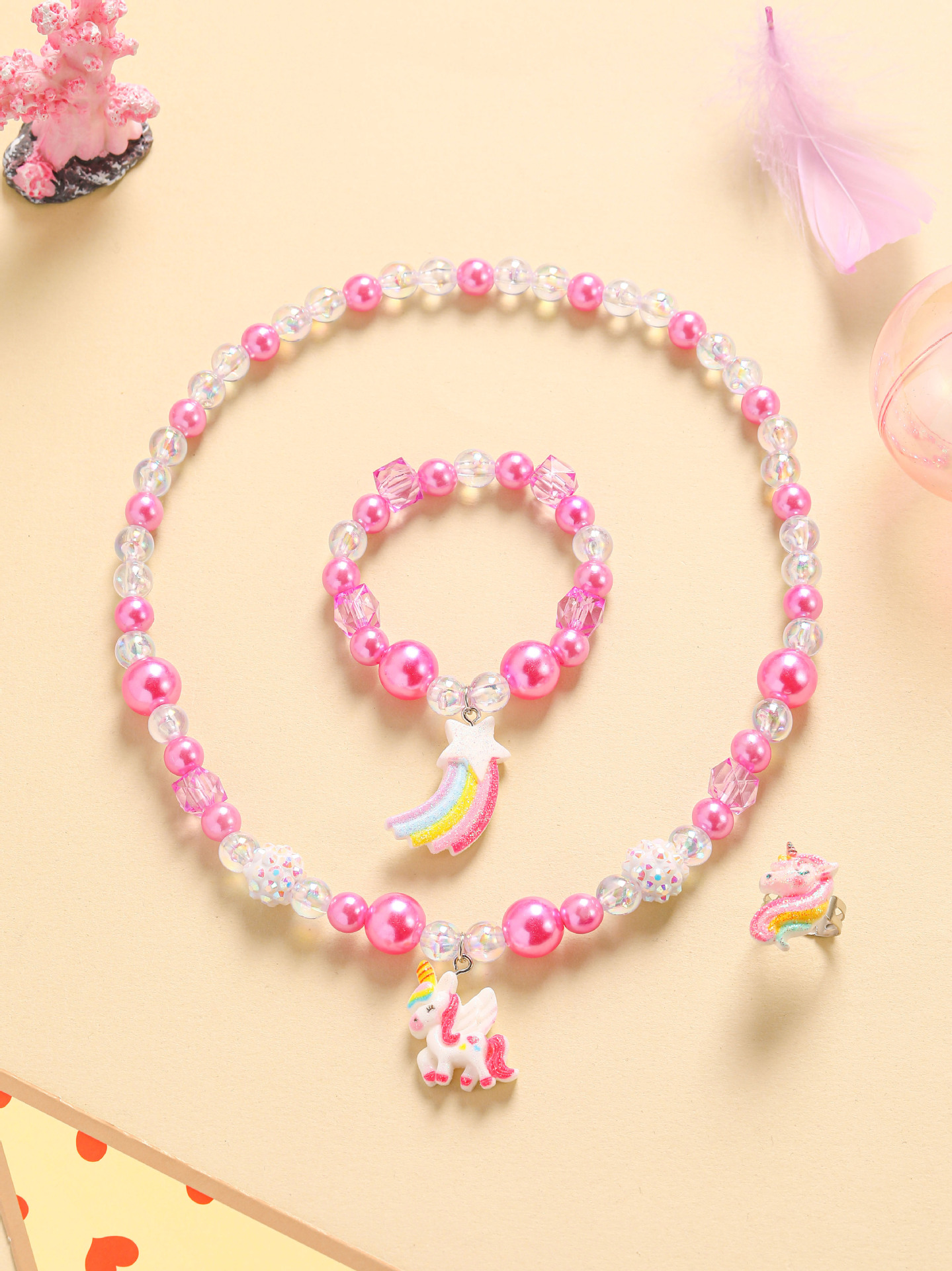 虹のポニーの子供のネックレスのブレスレットのピンクの蝶結びのビーズの女の子の赤ちゃんのかわいいアクセサリーのクロスボーダー