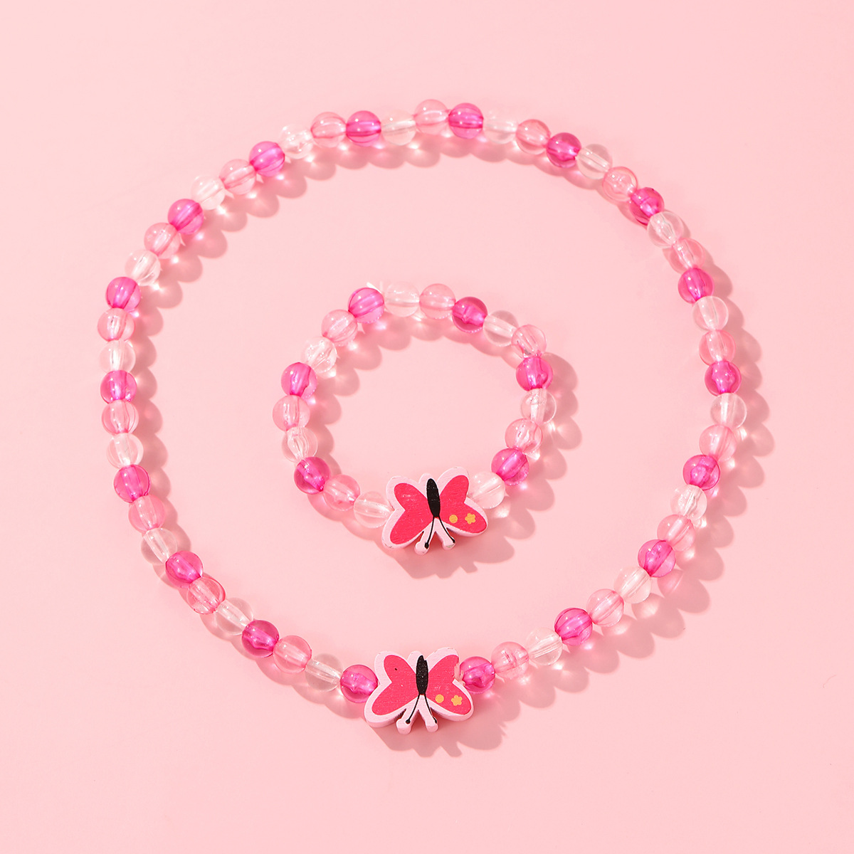 新品透明アクリルカラービーズ蝶ペンダントネックレスブレスレットセット
