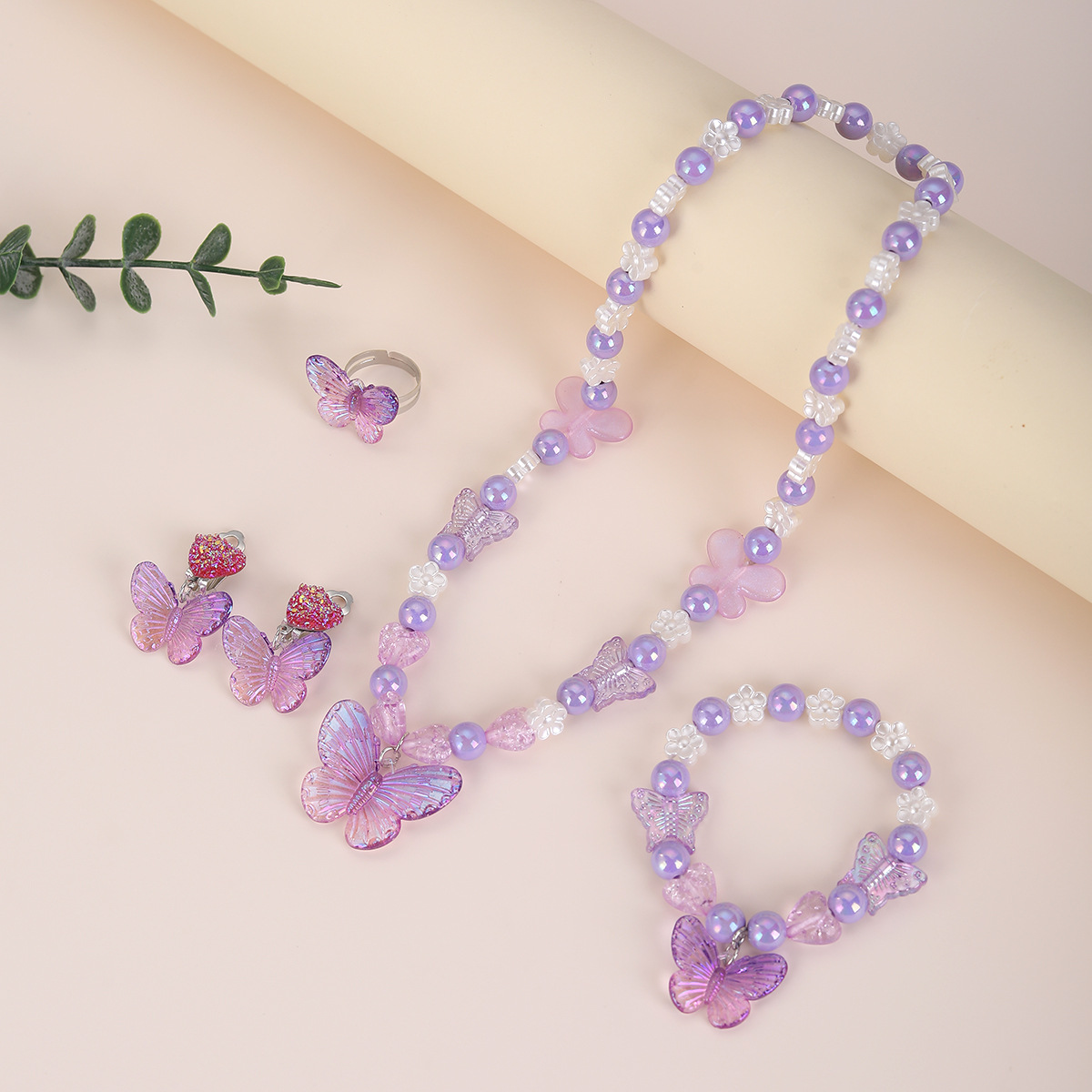 新しい子供の紫色の蝶のネックレスは水晶のブレスレットのチェーンの手の串のビーズの指輪の5つのセットになります。