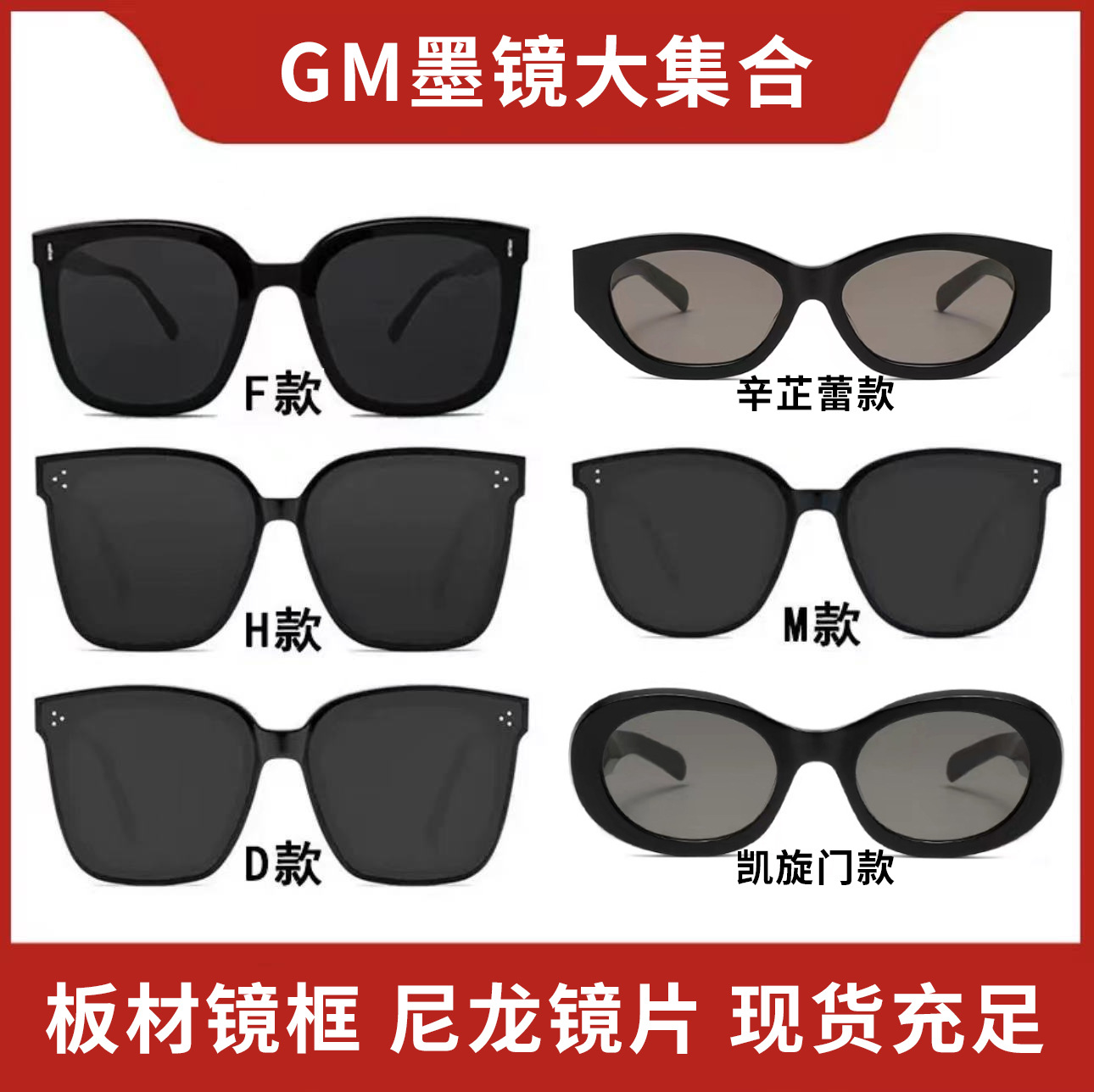 板材GM新型サングラス男女高級感ナイロンレンズ紫外線防止大枠に小潮風小紅本