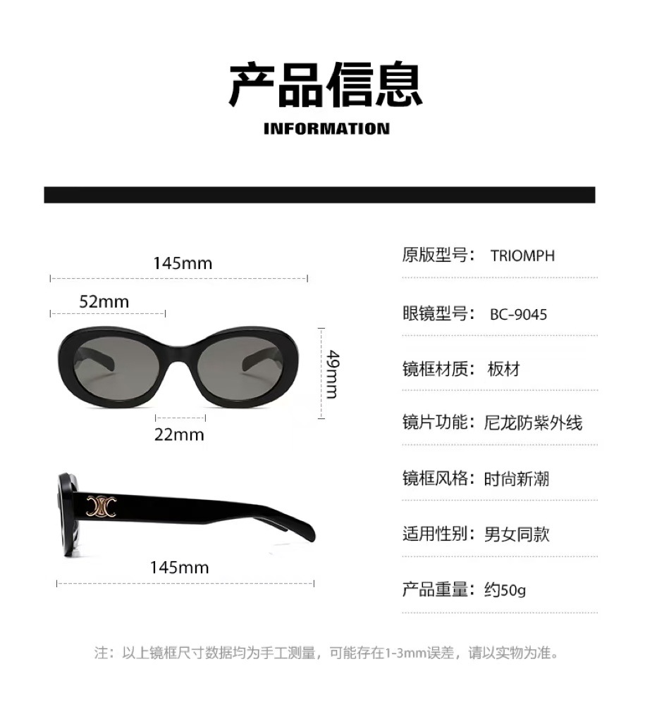 レトロな板材猫眼bc 9045サングラスレディース高級感2024モデル楕円近視サングラス紫外線