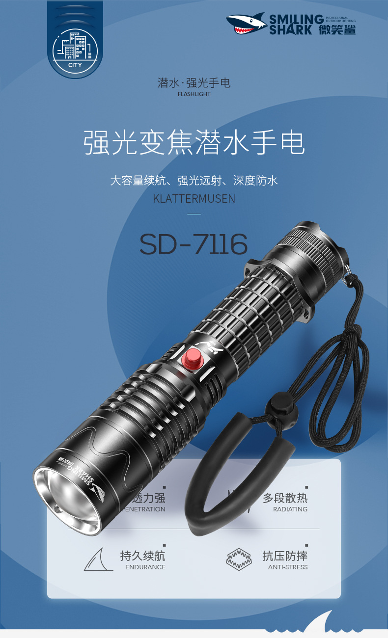 専門の潜水の懐中電灯の強い光の超明るいズームは水中の専用の防水の装備を充電することができます。