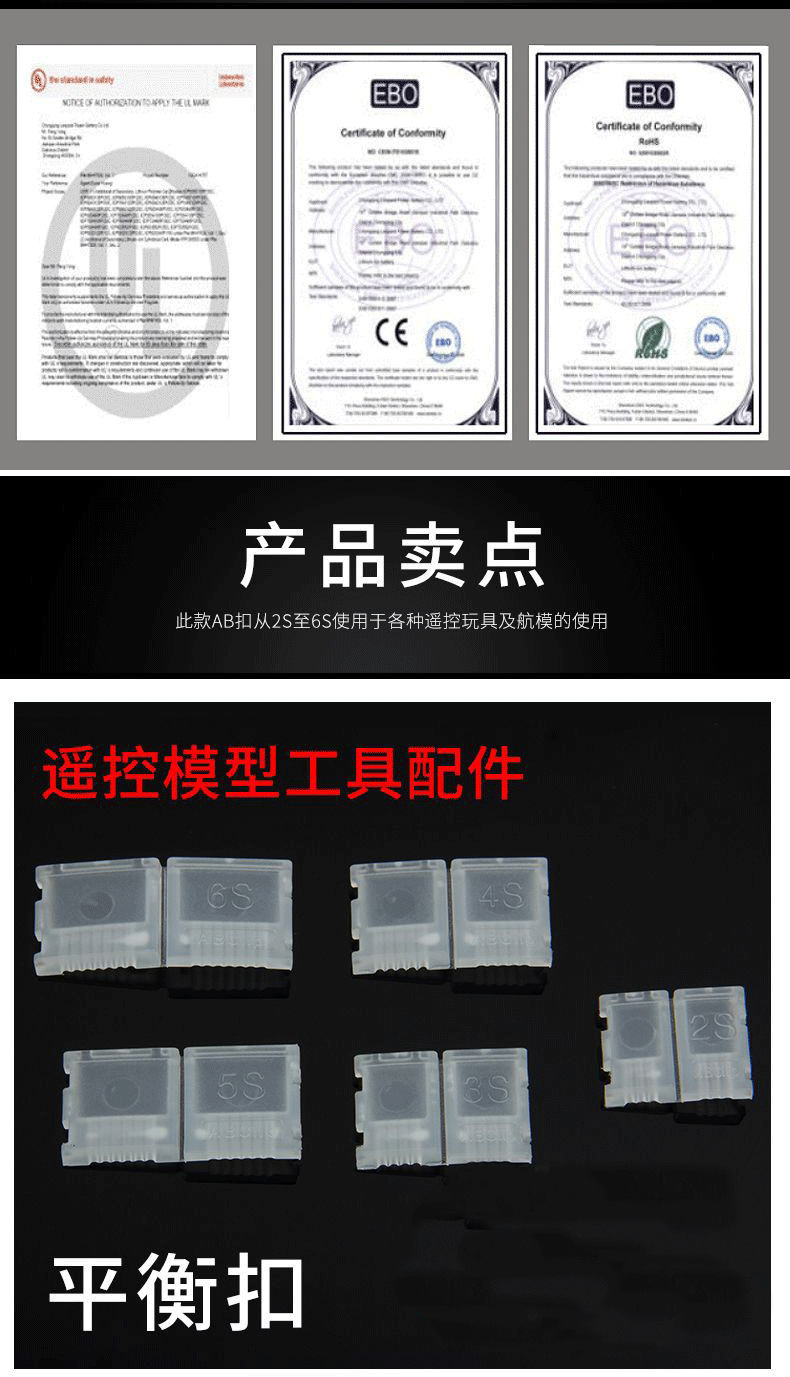 ABバックル航空モデルリチウム電池バランス充電プラグ保護線2S 3S 4S 5S 6S挿抜補助器