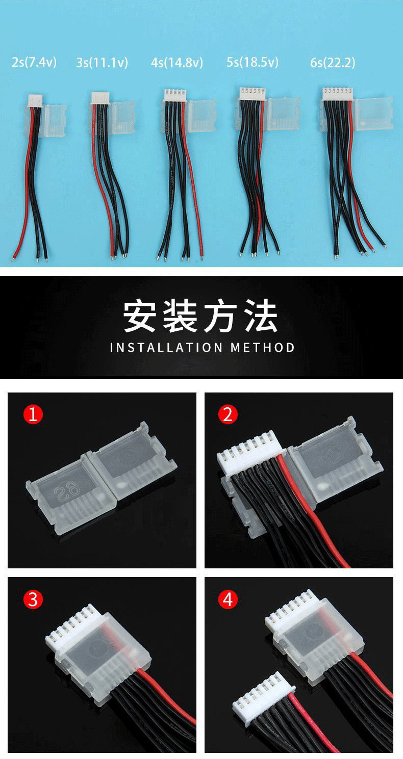 DIY配件2s 3s 4s 6s航模车模无人机锂电池平衡充插头线22号硅胶线
