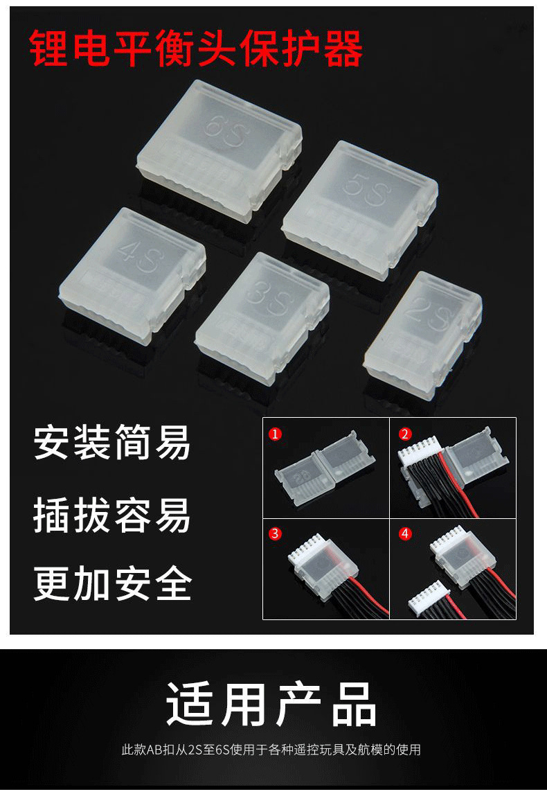 AB バックルモデル航空機リチウム電池バランス充電プラグプロテクターライン 2S 3S 4S 5S 6S プラグインアシスタント