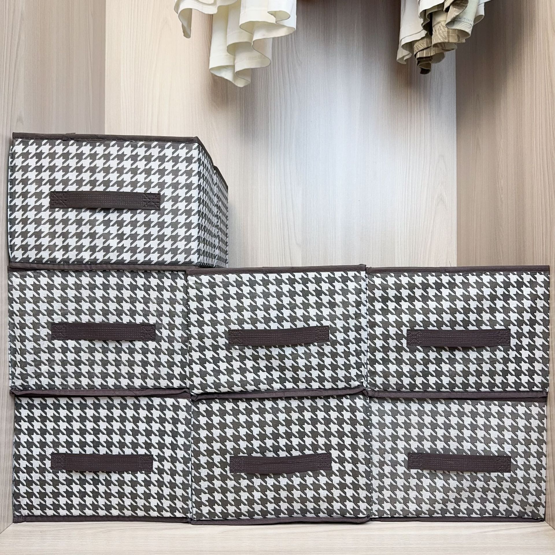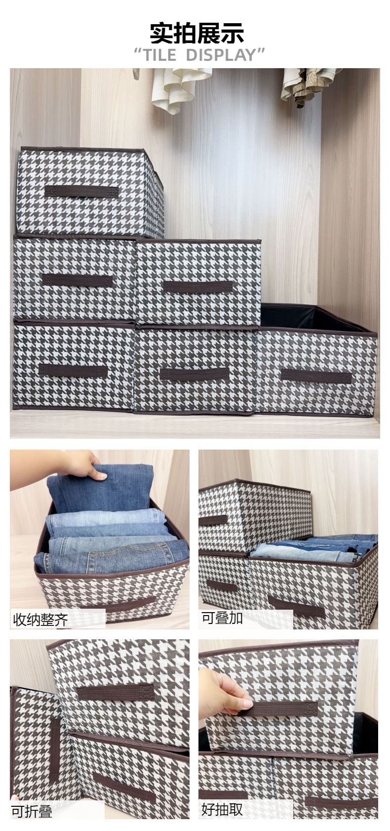 千鸟格衣服收纳箱神器分格家用衣柜抽屉式裤子衣物布艺带盖整理盒