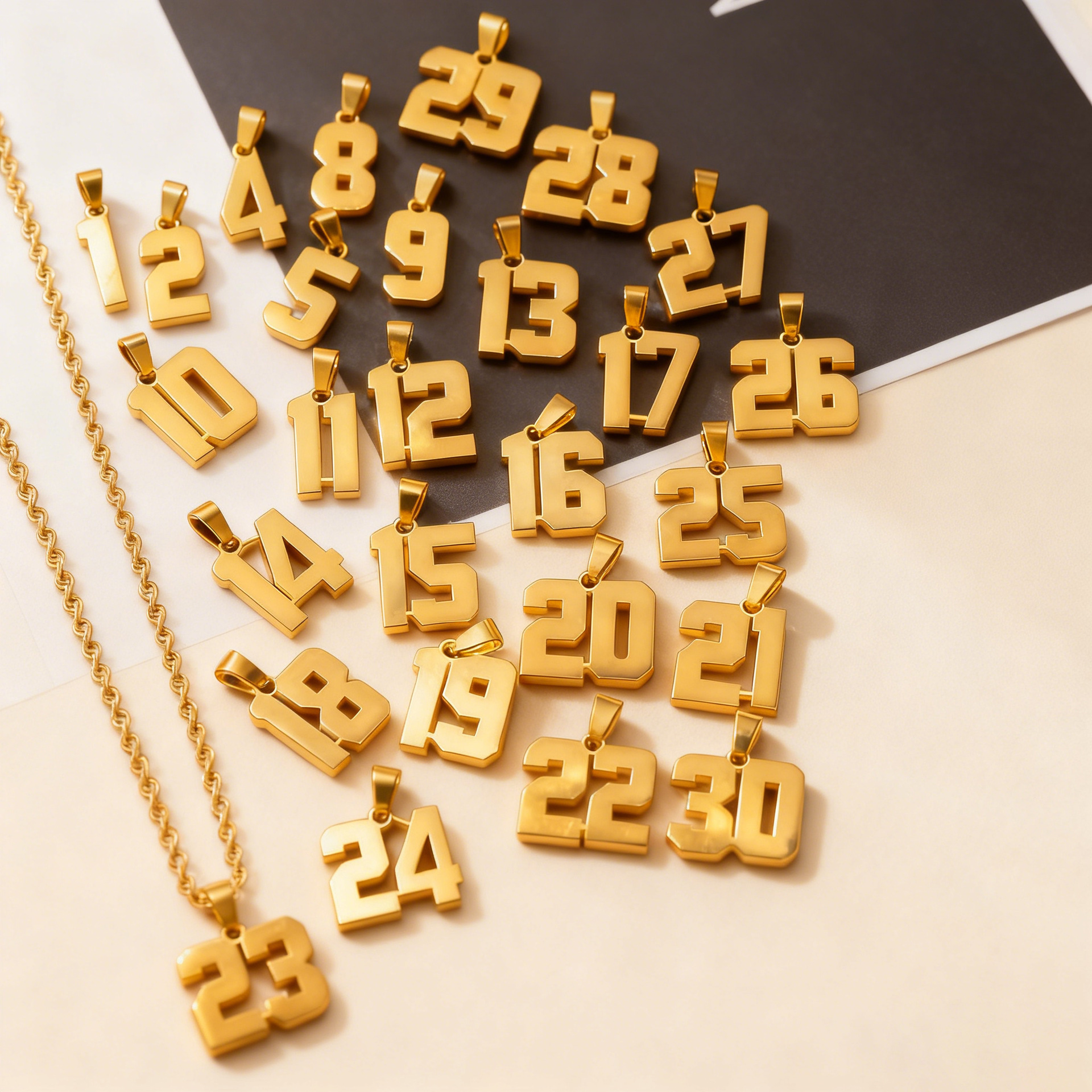 アマゾンの人気爆発デジタルネックレス選手ステンレスネックレス男子女子ペンダントネックレス金色
