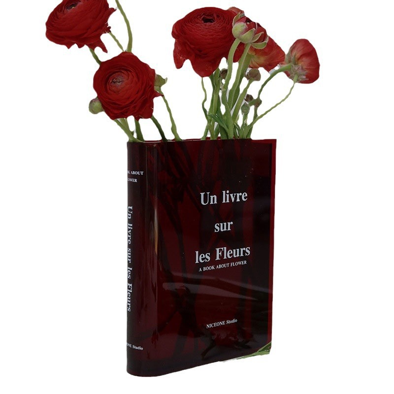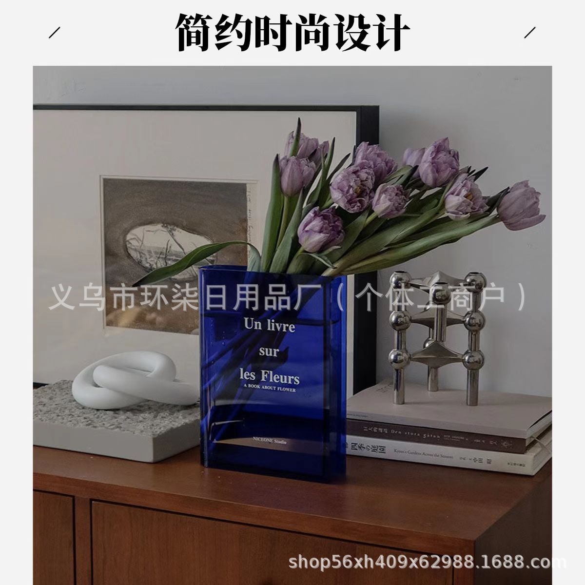 ins风法文亚克力花瓶鲜花插花器咖啡店桌面亚克力书本花瓶摆件