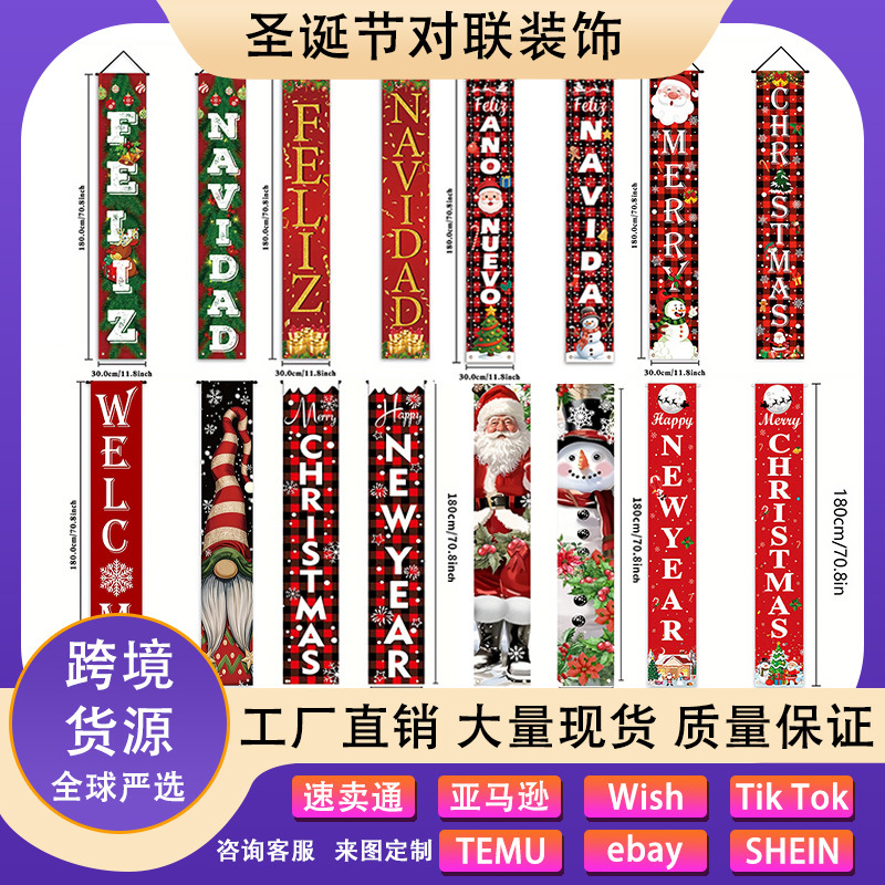 亚马逊卡通圣诞节对联氛围装饰布置节日圣诞节主题派对门帘挂旗
