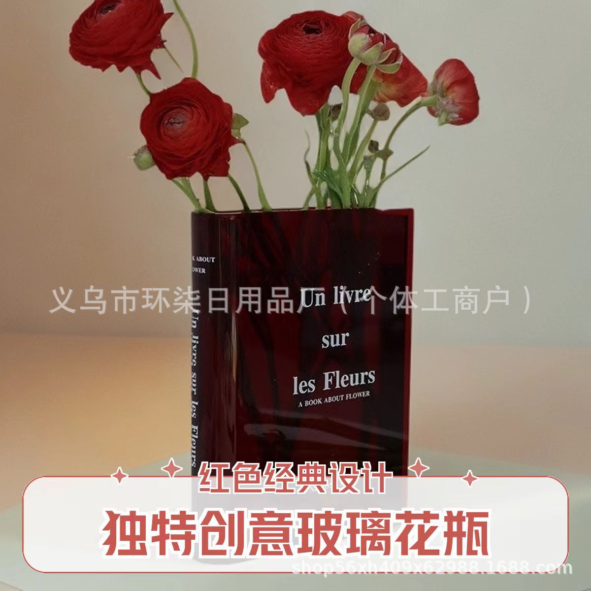 北欧ins書籍透明本花瓶アクリル花瓶デスクトップに家庭装飾品リビング本
