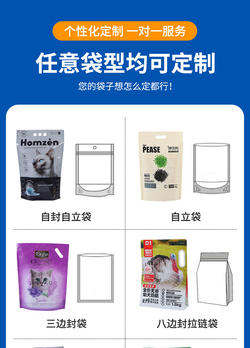 クロスボーダー豆腐猫砂袋カスタム小ロット自立自己密封複合アルミ箔真空袋ペット飼料食品袋