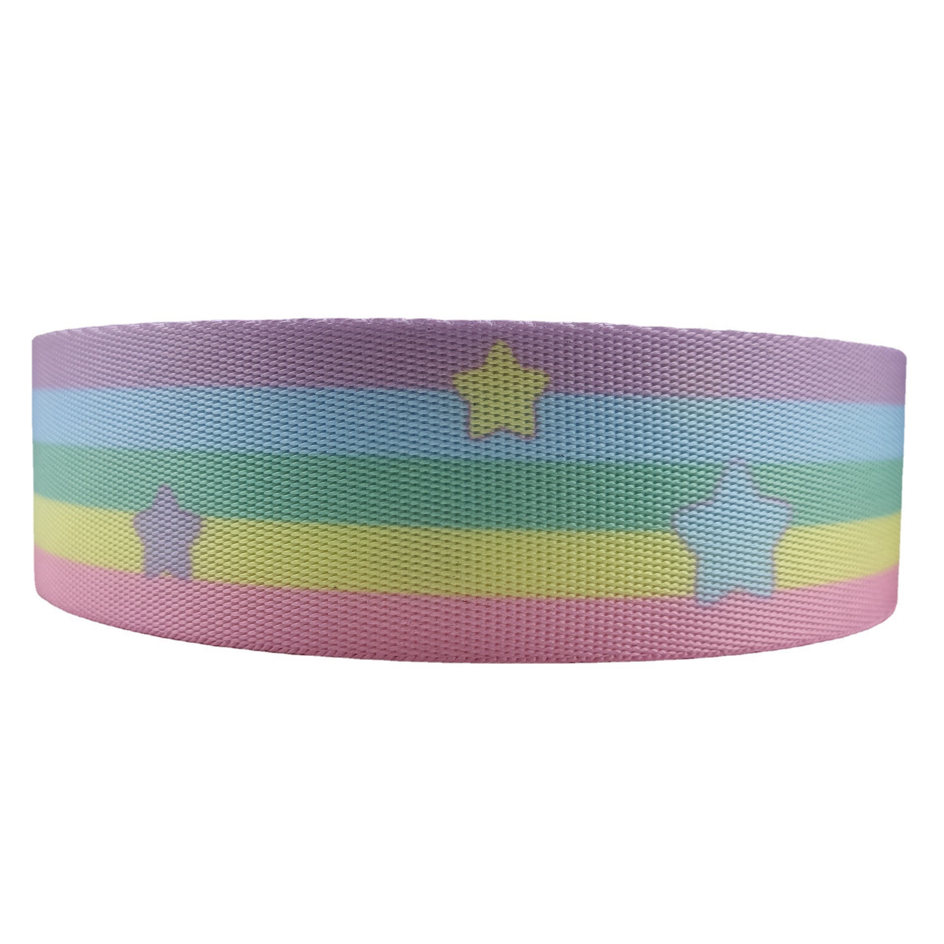 現物2.5cm幅ポリエステル虹星リボンプリント両面熱転写学生カバン背もたれ厚手リボン