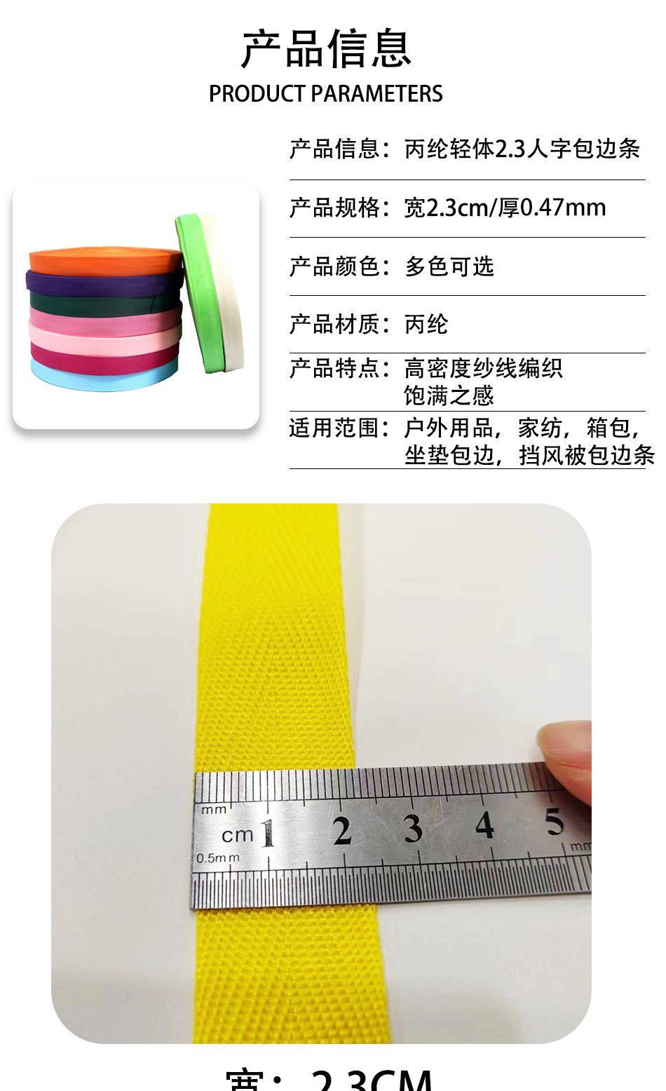 ポリプロピレン軽体2.3cm人字包縁帯リュックサック肩帯包縁箱座布団家紡織補助材料包縁条