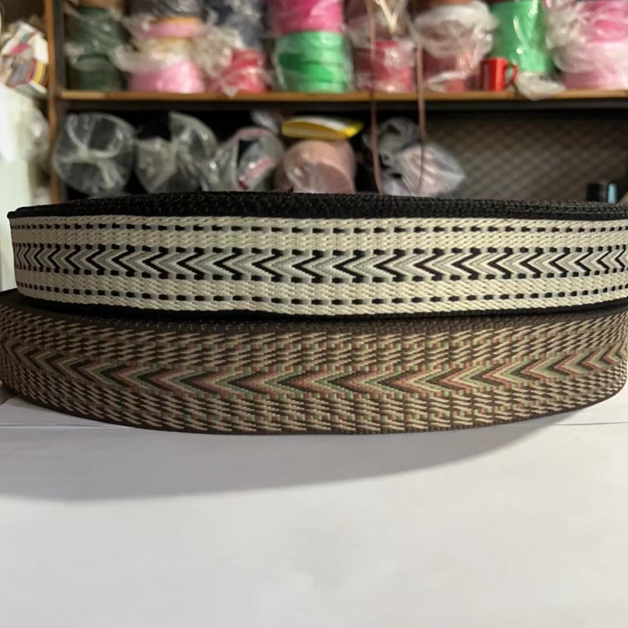 国境を越えた新しい綿の間色の綿の矢印のリボンのジャカードの3.8cmのリボンの流行のカバンの肩ひものリボン