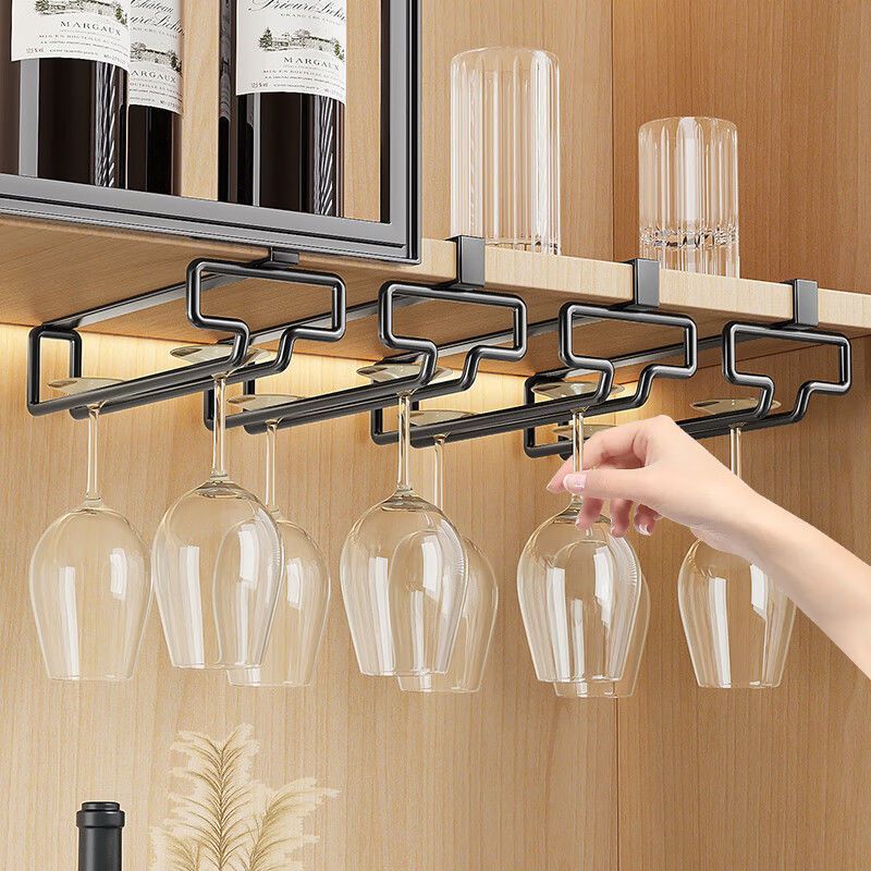 新款红酒杯架倒挂免打孔通用高脚杯置物架葡萄酒柜壁挂侧装香槟杯