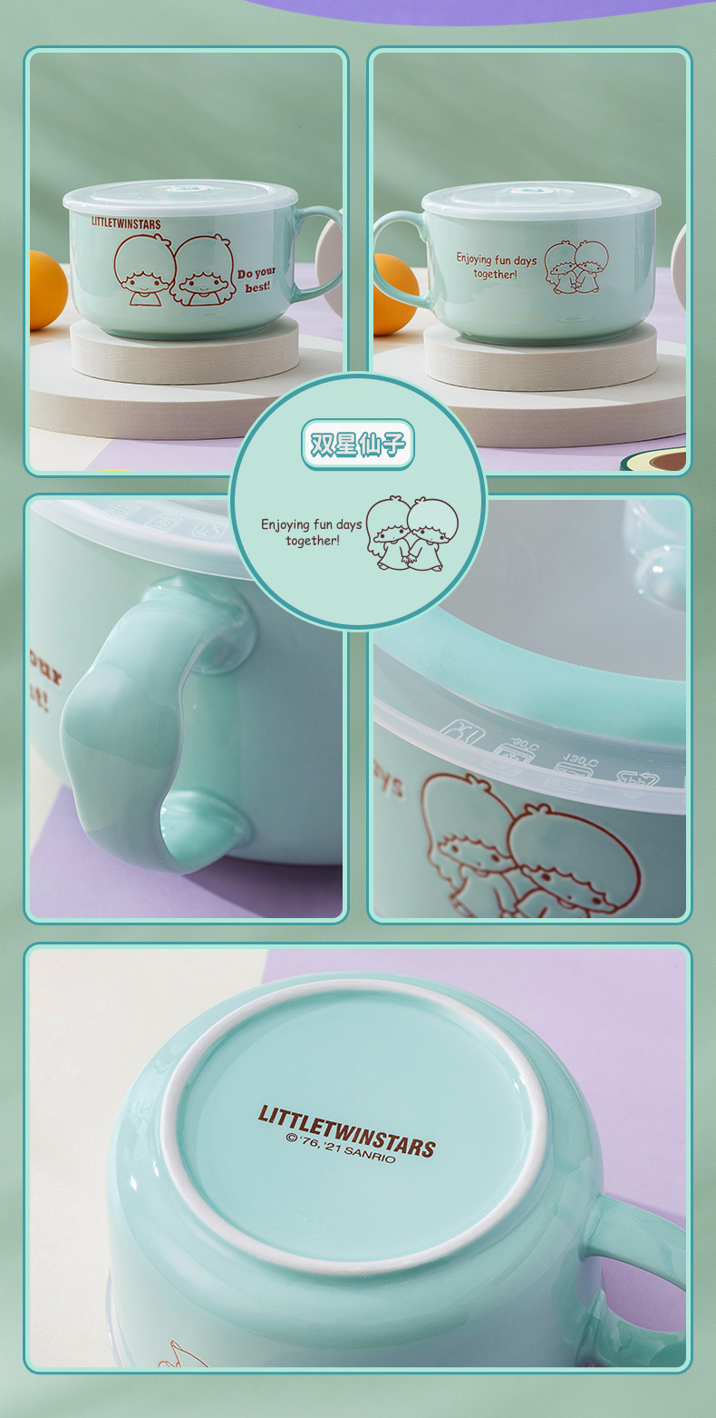 サンリオ陶磁器カップラーメン碗蓋付き弁当箱家庭用密封保冷碗学生寮弁当箱可愛い茶碗