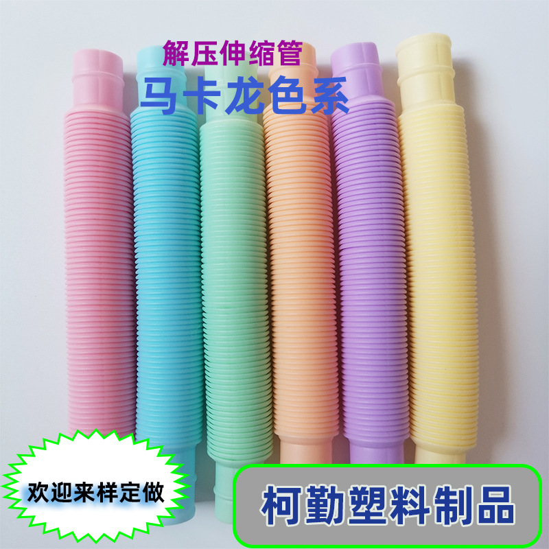 直接販売クロスボーダーpop tubeマカロン色の細い歯はプラスチックの管の波紋の伸縮管を引っ張ります。