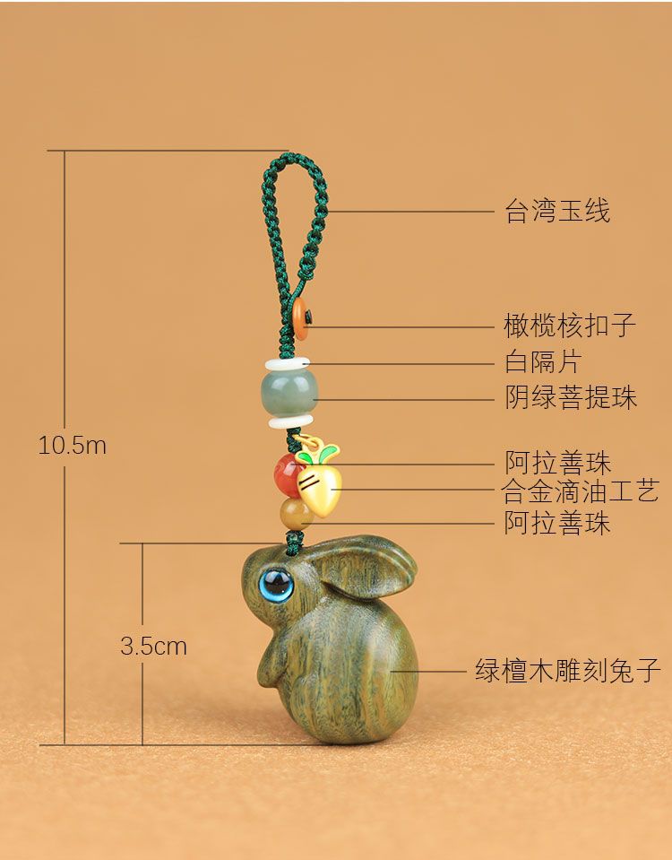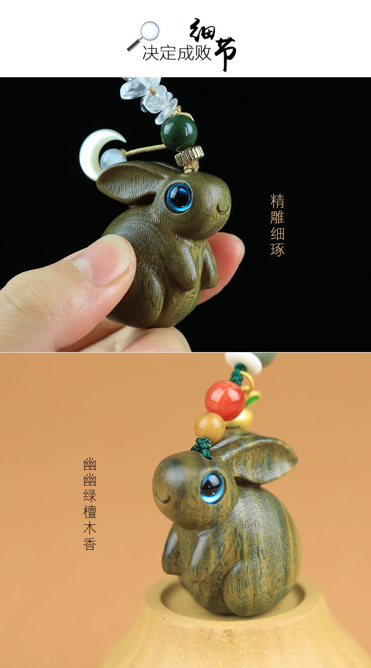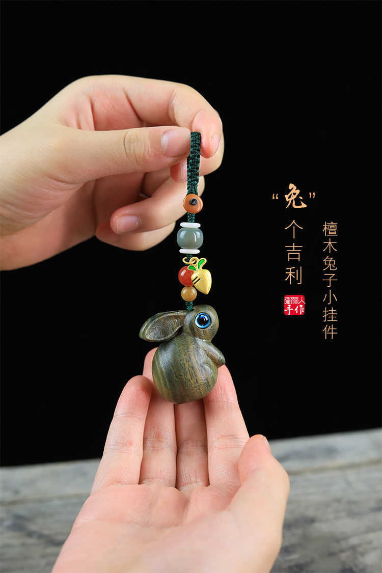 緑檀木の生肖のウサギのキーホルダーは自動車の鍵のペンダントを掛けます。