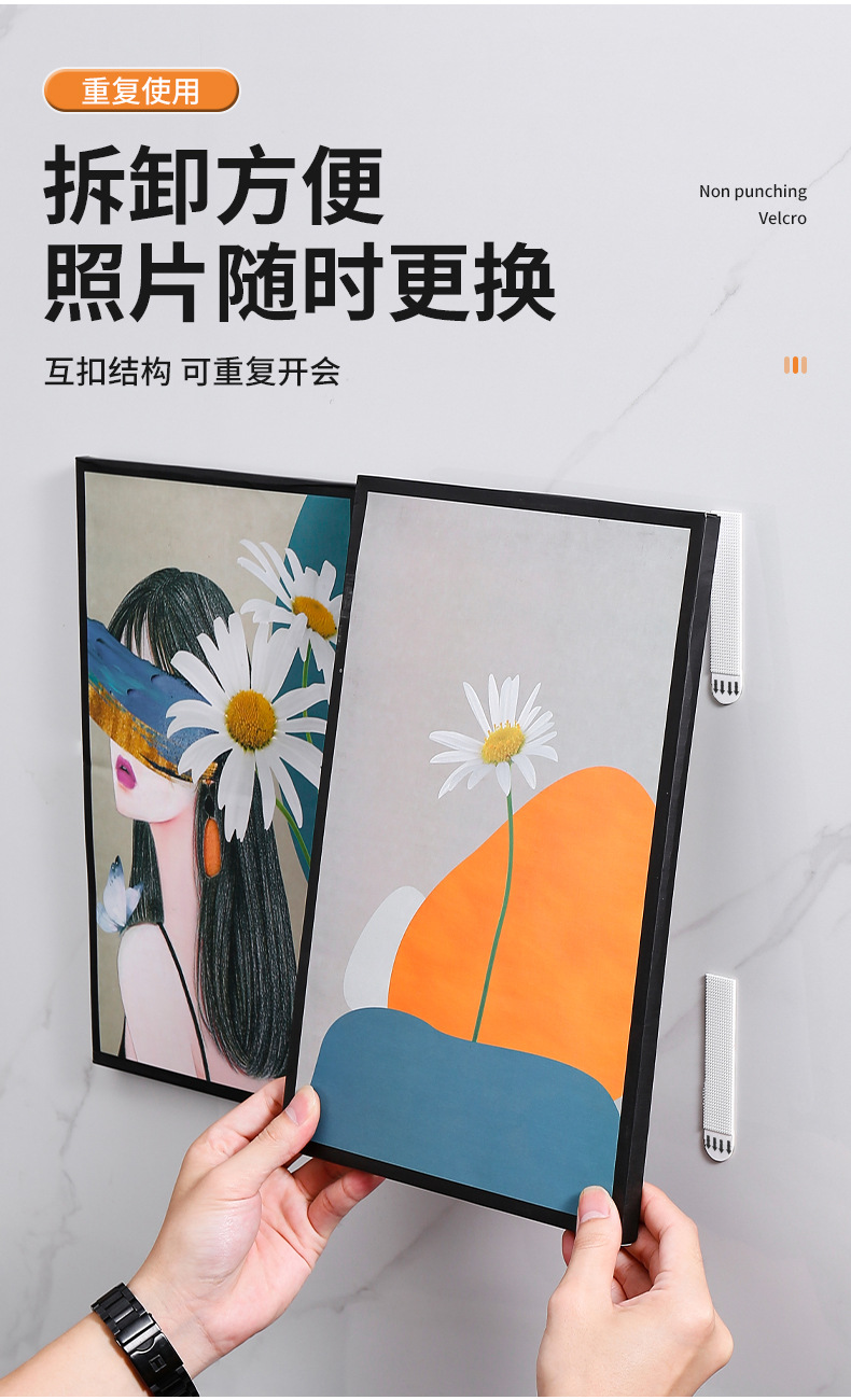 壁紙・壁装材専用吊り下げ絵画加工品、パンチフリーのウェディングフォトフレーム、壁掛け釘、粘着ベルクロ、跡の残らないマジックバックル