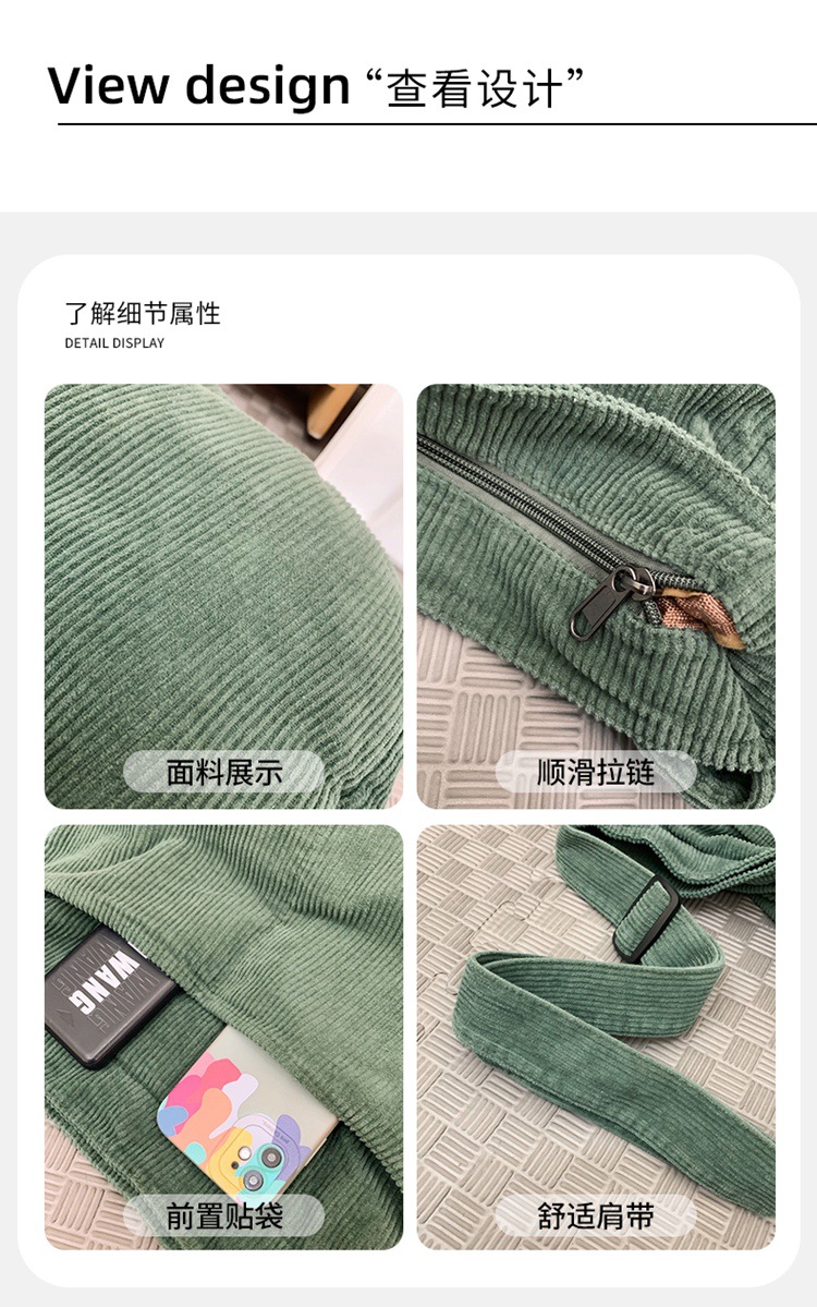 新型の韓系は簡単で太い条の絨毛を斜めに掛けて女子学生の純色のコーデュロイの布袋を包みます。