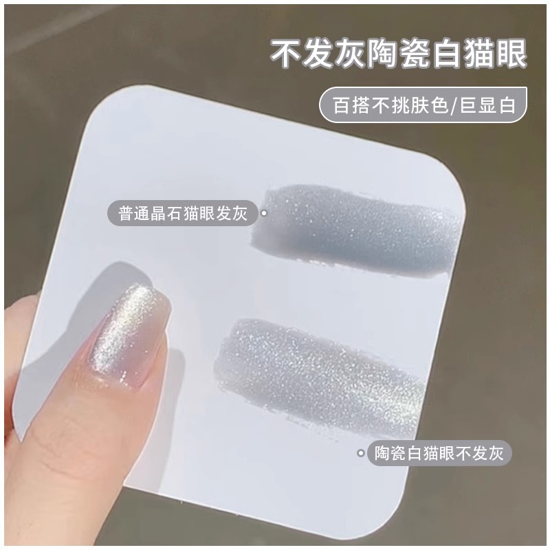 ネットセレブ人気ストリーマーホワイトキャットアイマニキュア接着剤2025春夏新作人気磁器ホワイトガラスビーズキャットアイ接着剤