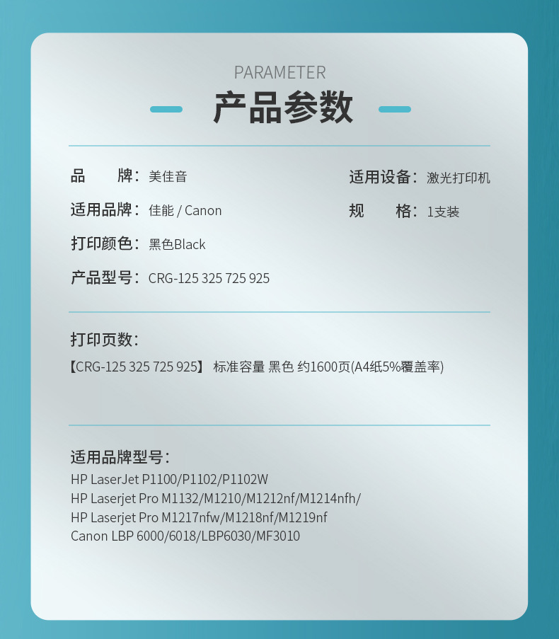 キヤノンCRG925トナーカートリッジCRG325カートリッジCRG725 CRG125 mf 3010 3018 3108